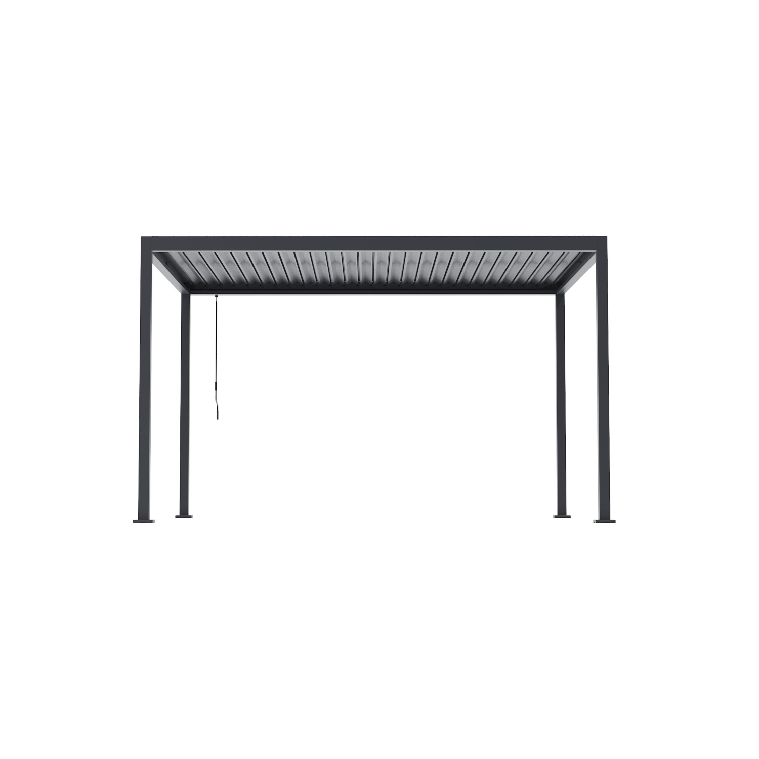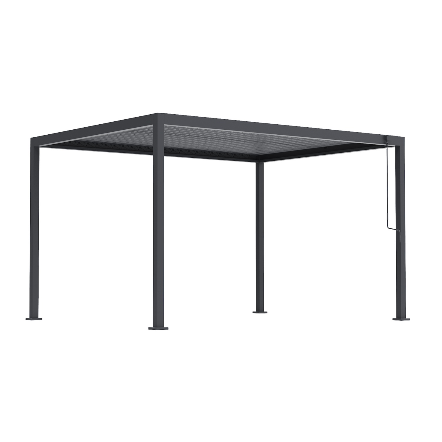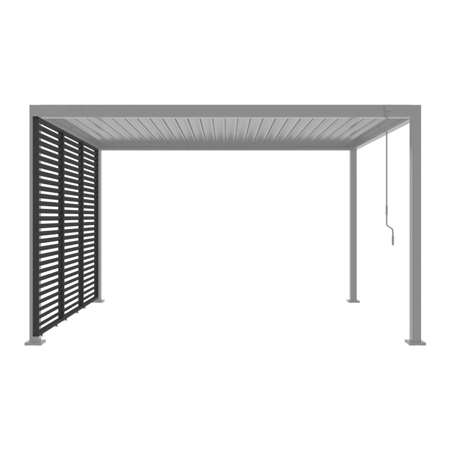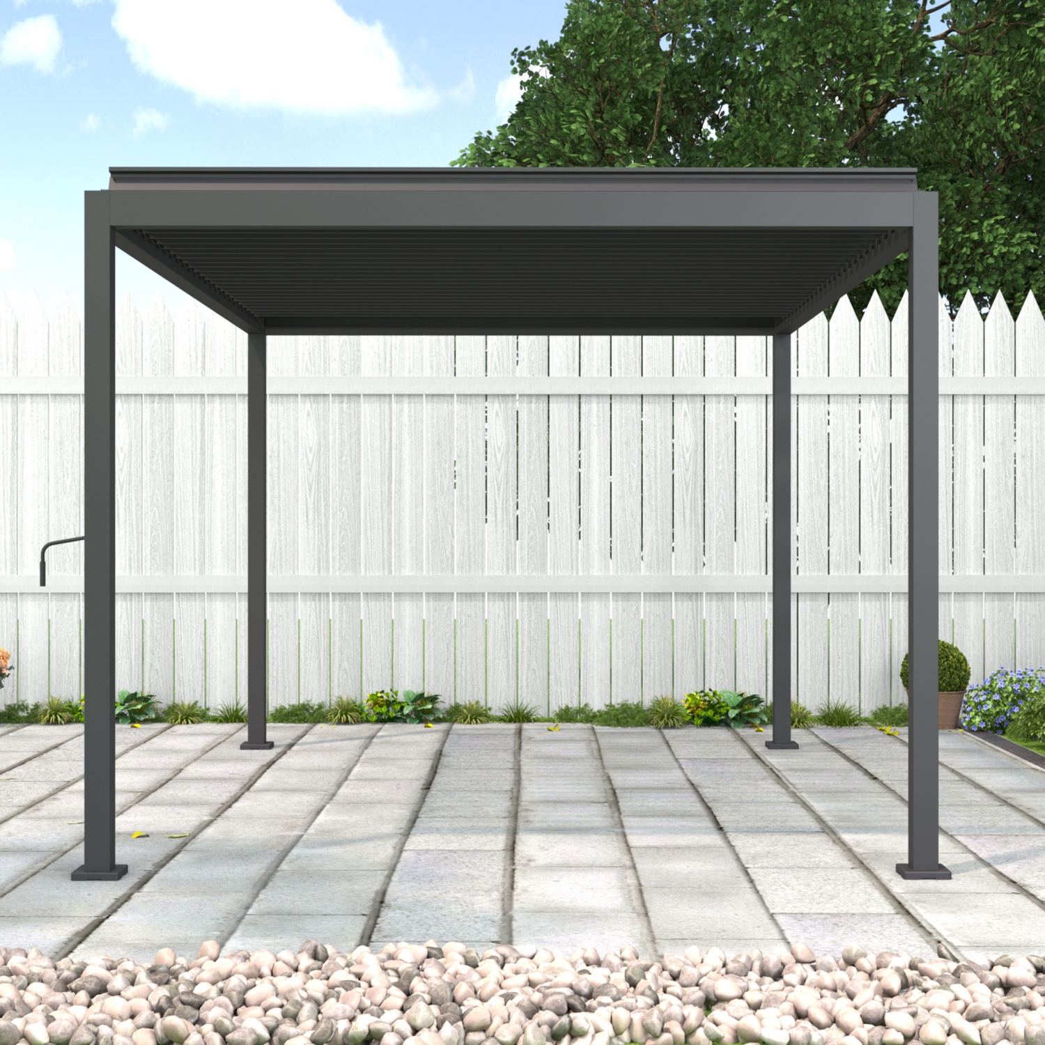 Intelligenter Komfort: Das elegante verstellbare Lamellendach ermöglicht eine mühelose Kontrolle von Sonnenlicht und Luftzirkulation.