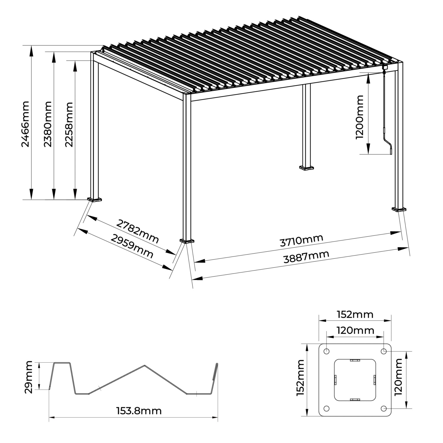 Anspruchsvolles Outdoor-Design: Die perfekte 3x4 m Struktur, um Garten, Terrasse oder Patio in einen exklusiven Entspannungsbereich zu verwandeln.