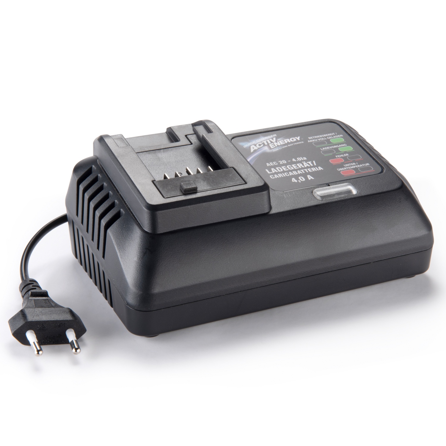 • Akku-Ladegerät passend zu den 20 V und 20 V/40 V Akku-Packs der Marke „Activ Energy“