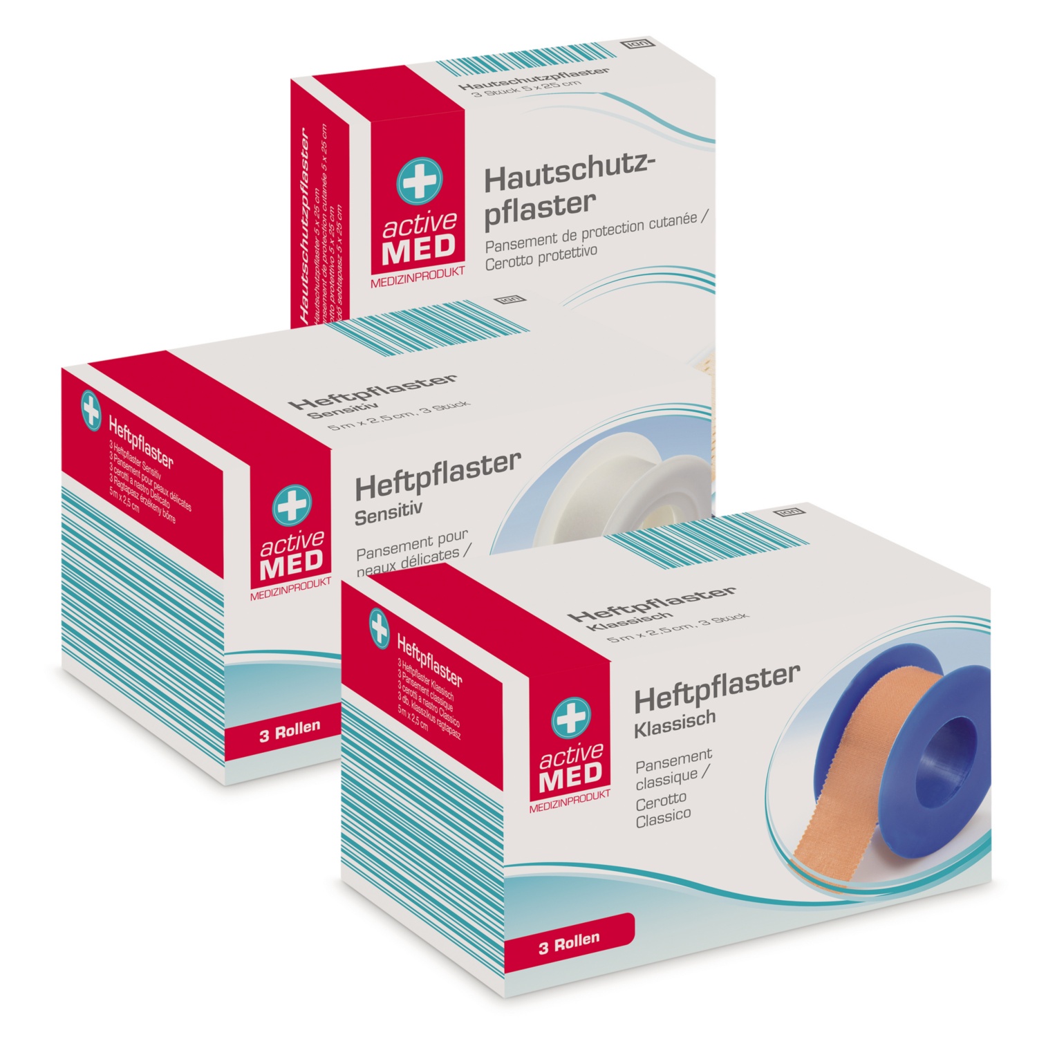 • Heftpflaster: zur Fixierung von Verbänden und Wundauflagen, haftet sicher auf der Haut, atmungsaktiv, classic oder sensitiv, Gr. 5 m x 2,5 cm, 3 Rollen