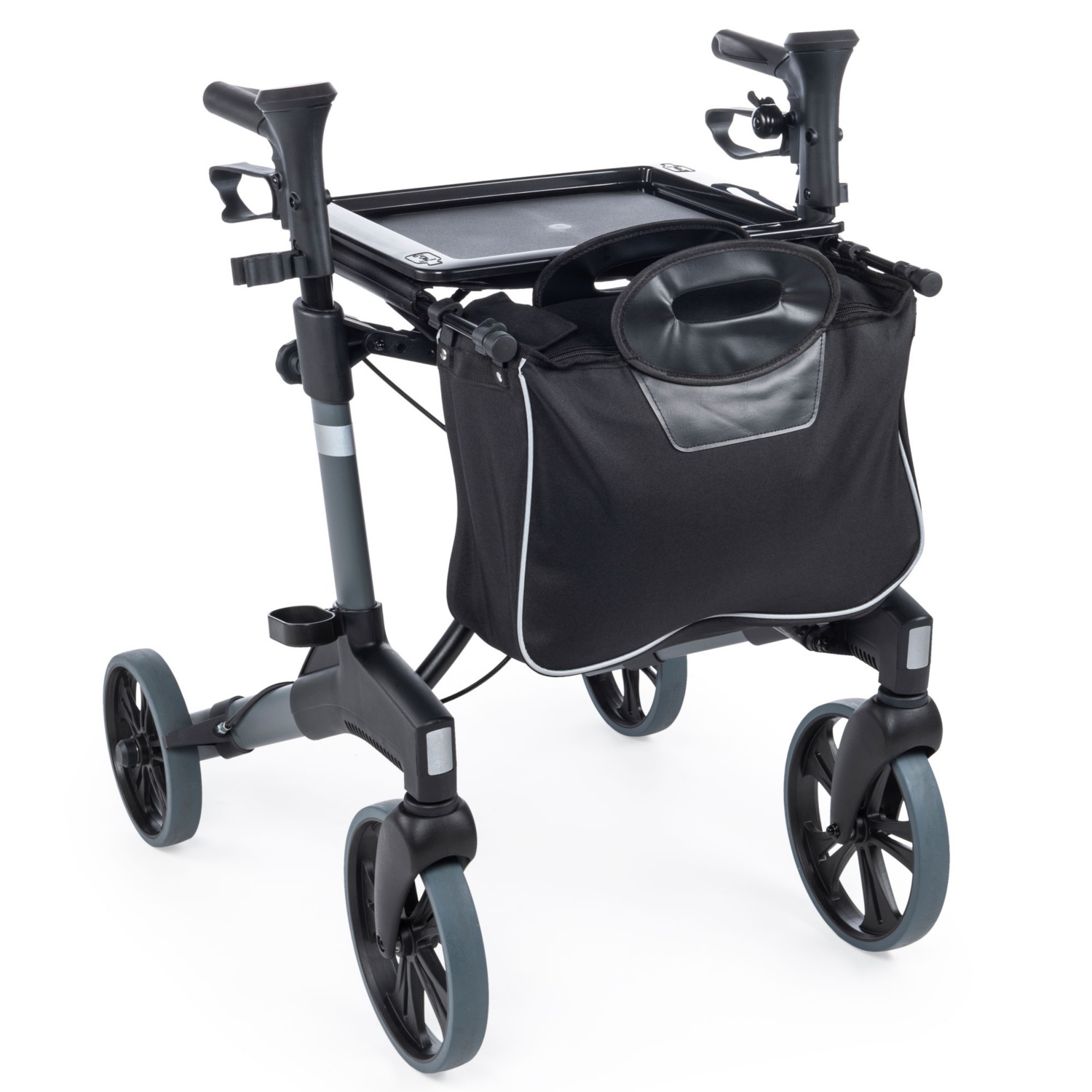 • inkl. abnehmbarem Tablett, Gehstockhalterung, abnehmbarer Tragetasche, Klingel, LED-Licht und Reflektoren