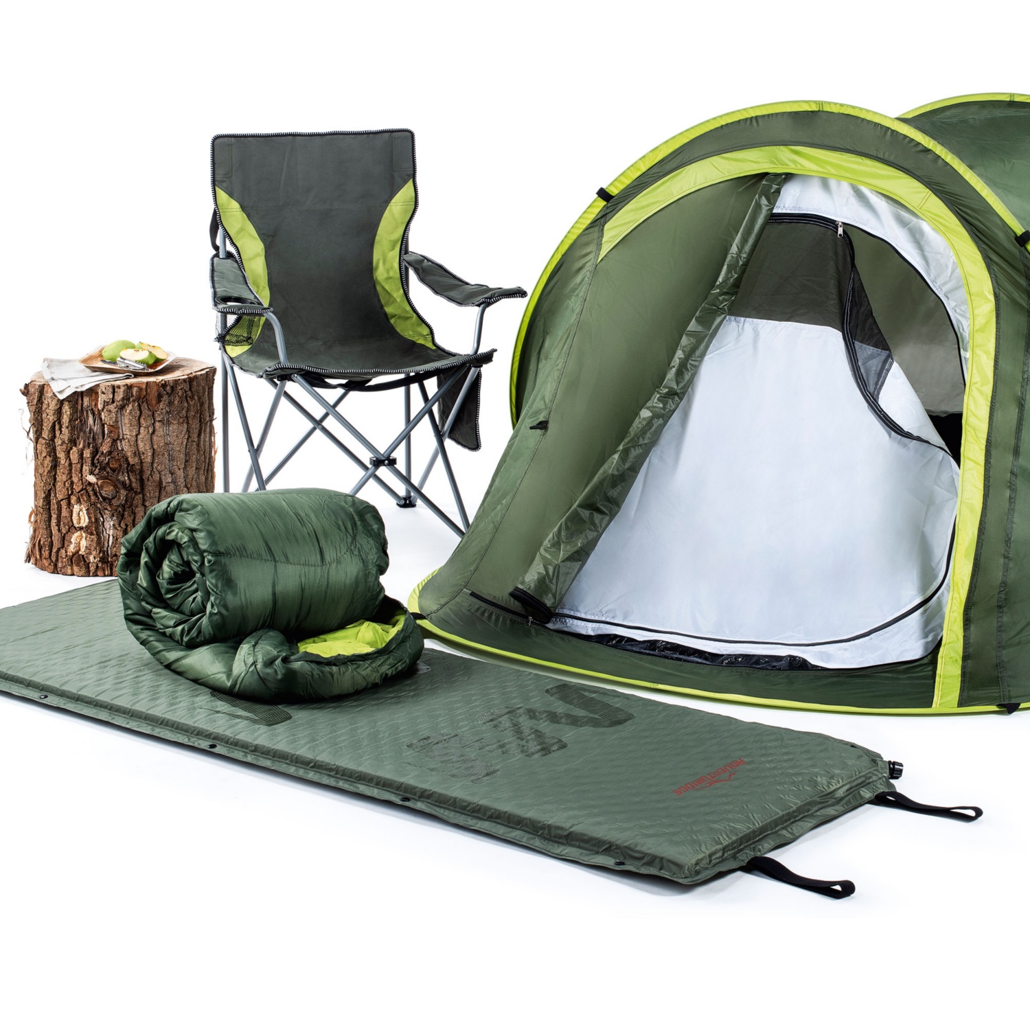 strapazierfähiges Außenmaterial mit sehr guter Isolation, hoher Liegekomfort durch extra dicken Luftschaum-Polster, Anti-Rutsch-Beschichtung verhindert das Verrutschen des Schlafsackes auf der Matte