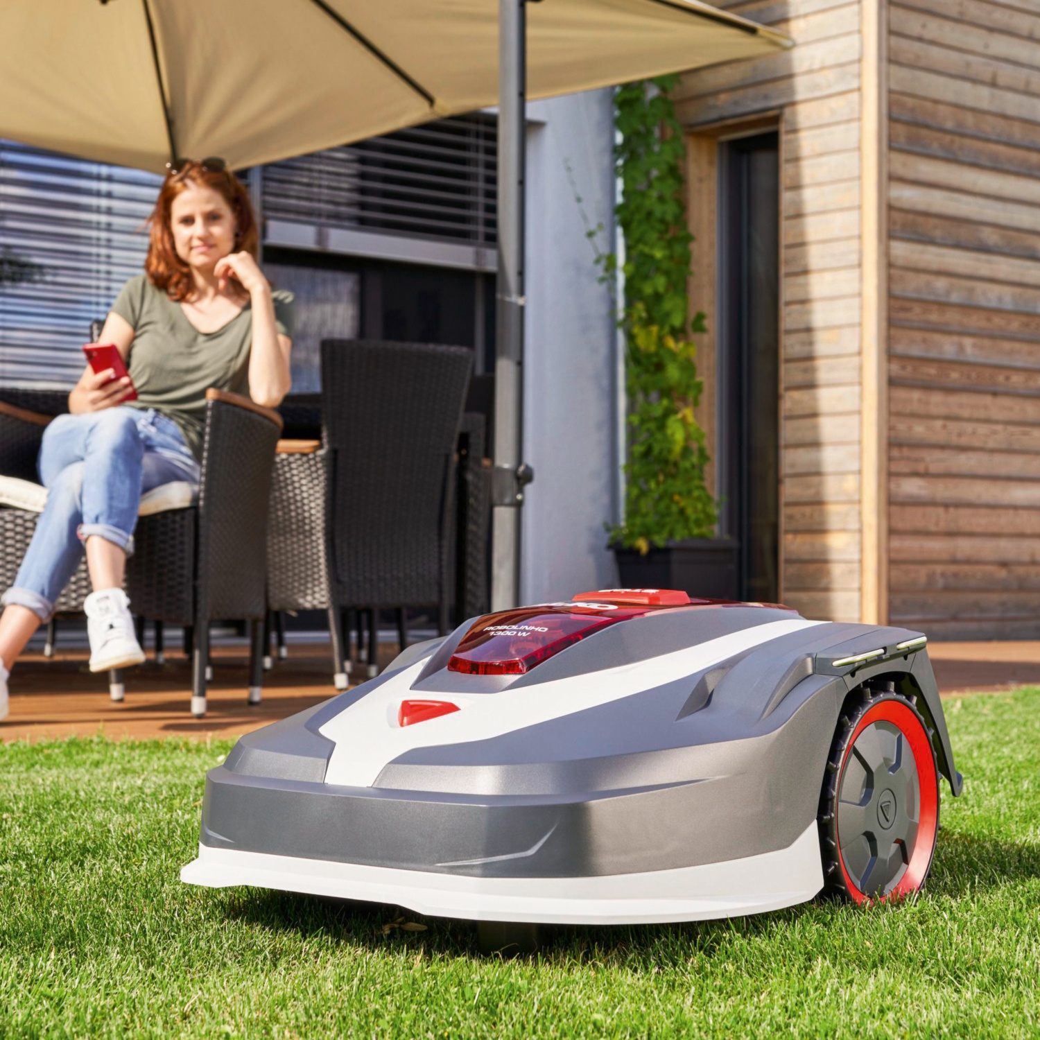 • mäht vollautomatisch Flächen von bis zu 1300 m². Flüsterleise mit 60 dB(A)