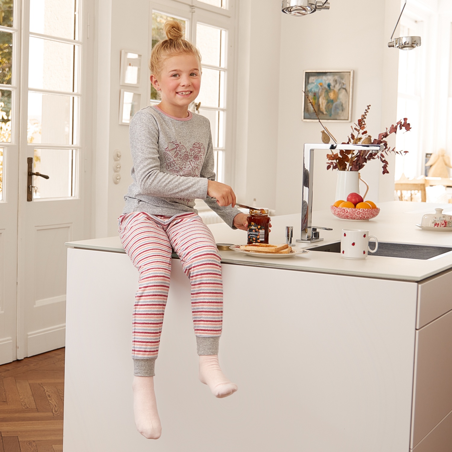 angenehmer Tragekomfort durch hohen Baumwollanteil (Bio), Set aus Langarmshirt und langer Hose mit Rippbündchen, Gr. 122 - 152