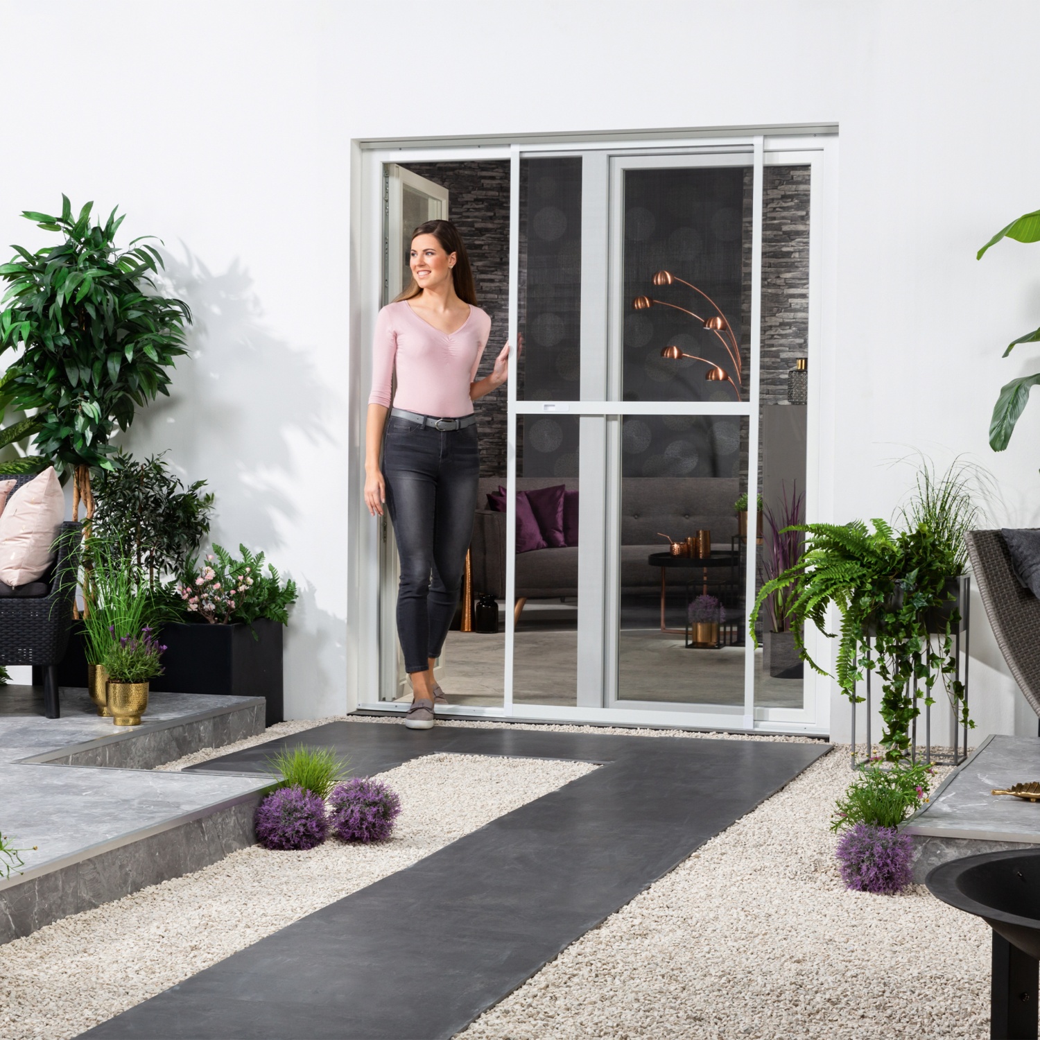 Gerade wenn es draußen wärmer wird, krabbeln im Garten, auf dem Balkon oder auf der Terrasse mehr und mehr Insekten. Der Insektenschutz für die Tür bietet zuverlässigen Schutz und punktet mit einer komfortablen Montage. Dank der cleveren Klemmvorrichtung kann die Insektenschutztür ganz einfach vor der Terrassentür angebracht werden. Für das Anbringen des Fliegengitters muss weder gebohrt, noch geschraubt werden. Für eine optimale Dichtung der Tür sorgt die umlaufende Dichtungsbürste der Zarge. Durch die geringe Einbautiefe passt die Tür in so gut wie jede Laibung. Und sollte nicht genug Platz zur Montage in die Laibung sein, kann die Insektenschutz-Doppelschiebetür auch ganz einfach von außen auf die Mauerlaibung geschraubt werden. Mit der integrierten Doppelführungsschiene lassen sich die Schiebetüren kinderleicht öffnen und schließen. Dazu kann die Schienen-Länge individuell an die Türen angepasst werden. Die hochwertigen Materialien sind extrem stabil, witterungsbeständig und langlebig. Die hochwertige Insektenschutz-Schiebetür bietet Schutz vor Wespen, Mücken und anderen lästigen Besuchern.