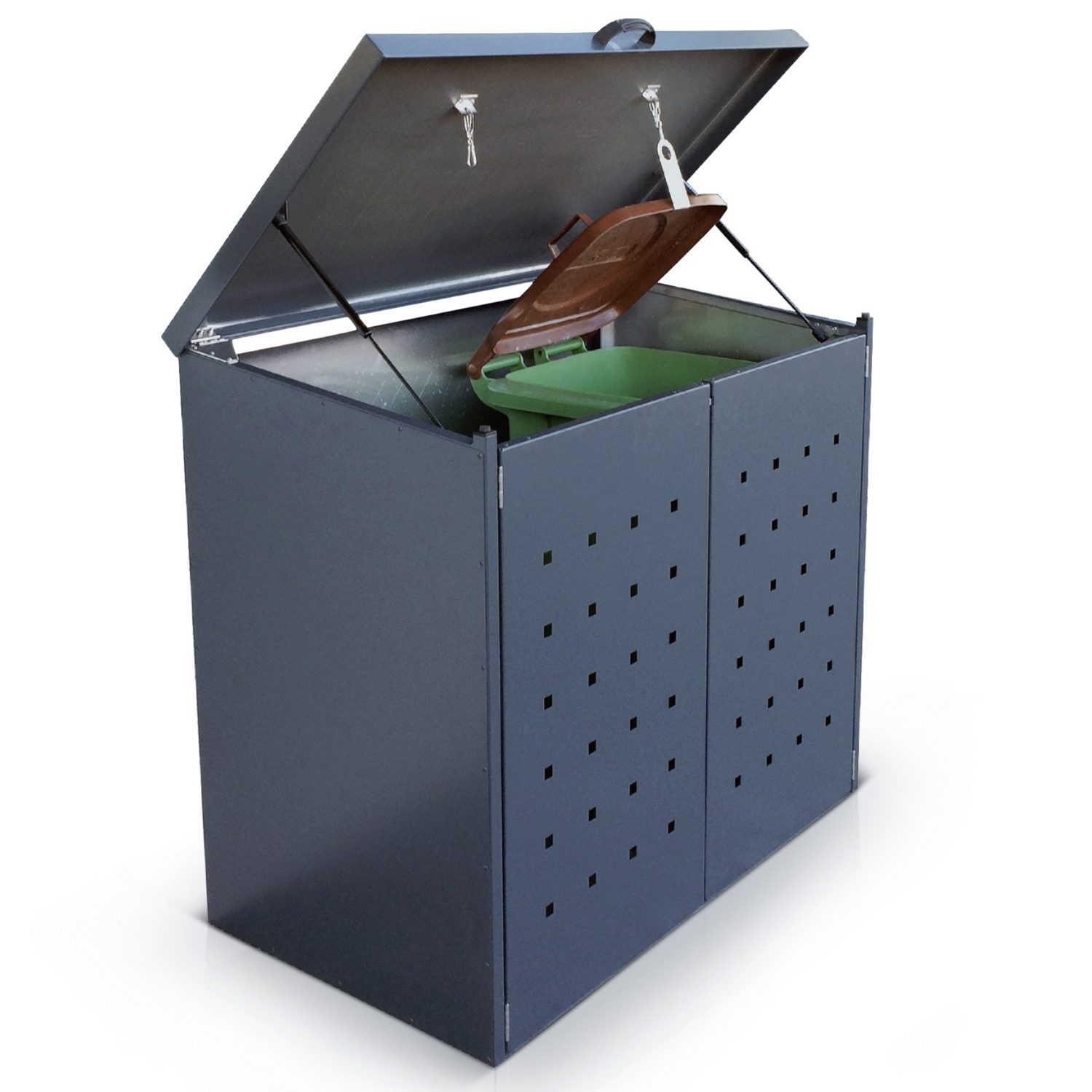 Artikelnummer: 76850 Wichtige Informationen zur Zustellung, Lieferzeit und Service-Hotline des Lieferanten, die Sie bei Fragen rund um die Zustellung/Lieferung jederzeit kontaktieren können, findenSie im Bereich „Lieferung& Rückgabe“! sorgt für Sauberkeit und Ordnung rund um Ihre Mülltonnen, für 2 x 120-l-Mülltonnen geeignet, aus wetterfestem, pulverbeschichtetem Aluminiumblech gefertigt Bitte beachten Sie, dass die „HOFER liefert“-Aktionsartikel, im Unterschied zu unserem dauerhaft erhältlichen Sortiment, nur in begrenzter Anzahl zur Verfügung stehen. Abgabe nur in Haushaltsmengen und solange der Vorrat reicht. Sollten bestimmte Produkte, trotz sorgfältiger Planung, aufgrund unerwartet hoher Nachfrage, am ersten Aktionstag ausverkauft sein, bitten wir um Verständnis. Alle Artikel ohne Dekoration. Die Abbildungen verstehen sich als Symbolfotos. Bei Preissenkungen ist die Angabe der %-Senkung kaufmännisch gerundet. Der PIN-Printing-Bestellcode-Bon, der beim Kauf eines „HOFER liefert“-Artikels in unserer Filiale erstellt wird, kann (z.B. bei Verlust) nicht neu ausgestellt bzw. erstattet werden. Das diesbezügliche Risiko liegt beim Kunden. Beim Kauf eines „HOFER liefert“-Artikels in unserer Filiale handelt es sich nicht um einen Kauf im Fernabsatz. Die fernabsatzrechtlichen Bestimmungen kommen daher in Bezug auf diese Artikel nicht zur Anwendung. Beim Kauf eines neuen „HOFER liefert“ Elektro- oder Elektronikgeräts können Sie ein Altgerät, sofern dieses von gleichwertiger Art und Funktion ist, an einer Abgabestelle in unserem Sammelnetzwerk oder in jeder HOFER-Filiale unter Vorlage des Kaufbelegs Ihres neuen Geräts kostenlos abgeben. Eine Liste aller Abgabestellen finden Sie in unseren FAQs. Technische und optische Änderungen sowie Satz- und Druckfehler vorbehalten. Für dieses Produkt besteht ein gesetzliches Gewährleistungsrecht. Sofern eine Garantiezusage besteht, schränkt diese die gesetzliche Gewährleistung nicht ein.