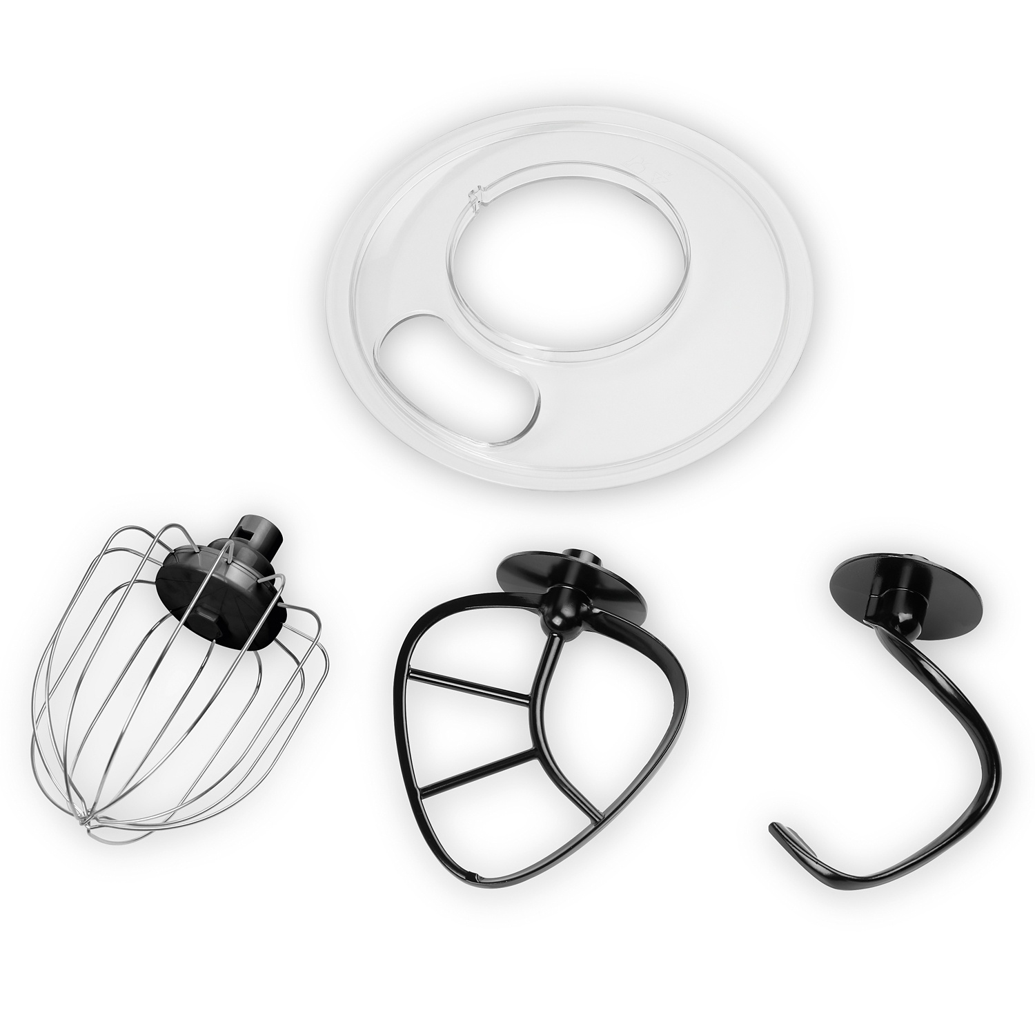• spülmaschinenfestes Zubehör: Knethaken, Rührbesen, Schneebesen, Spritzschutz