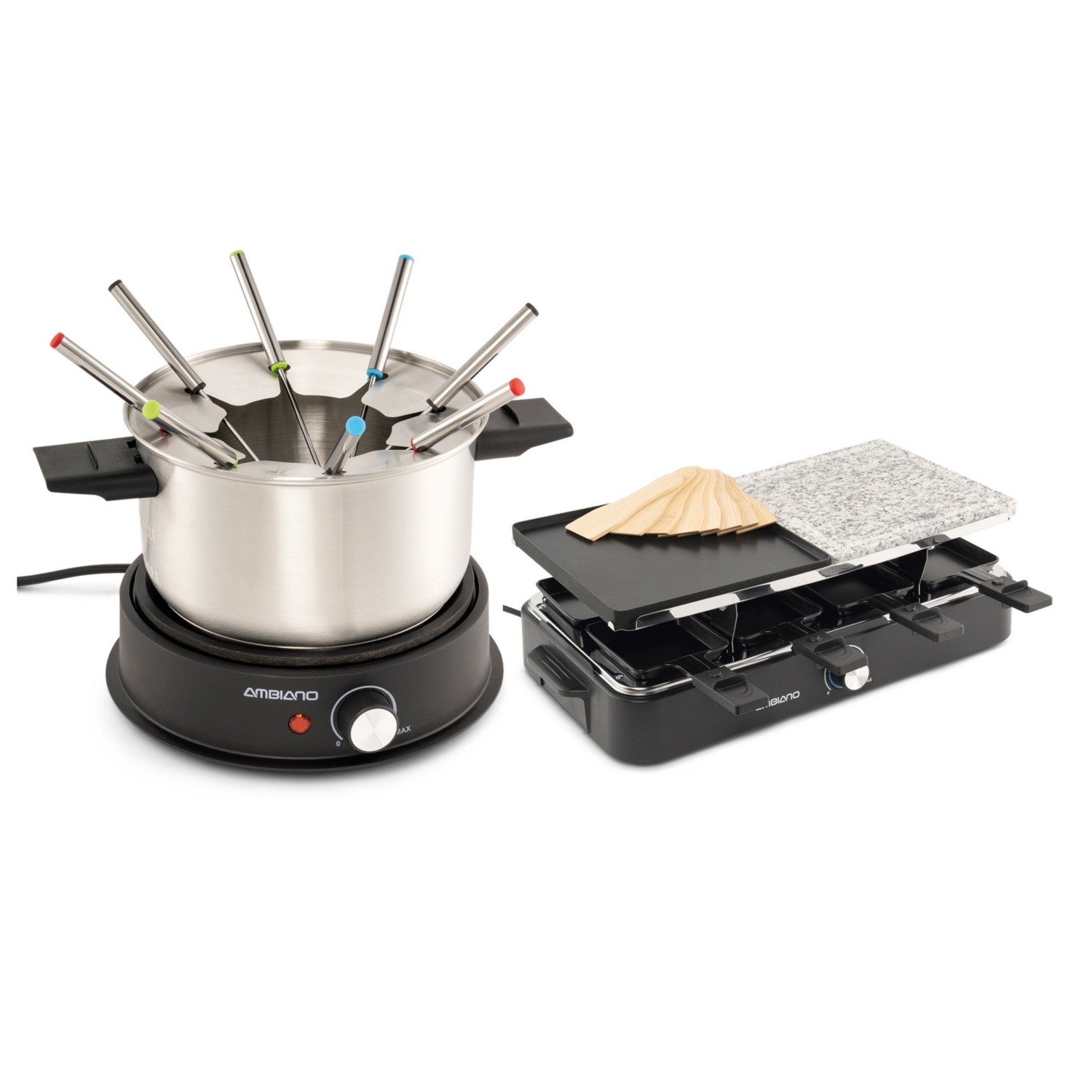 • 8 antihaftbeschichtete Raclettepfännchen mit wärmeisolierten Griffen