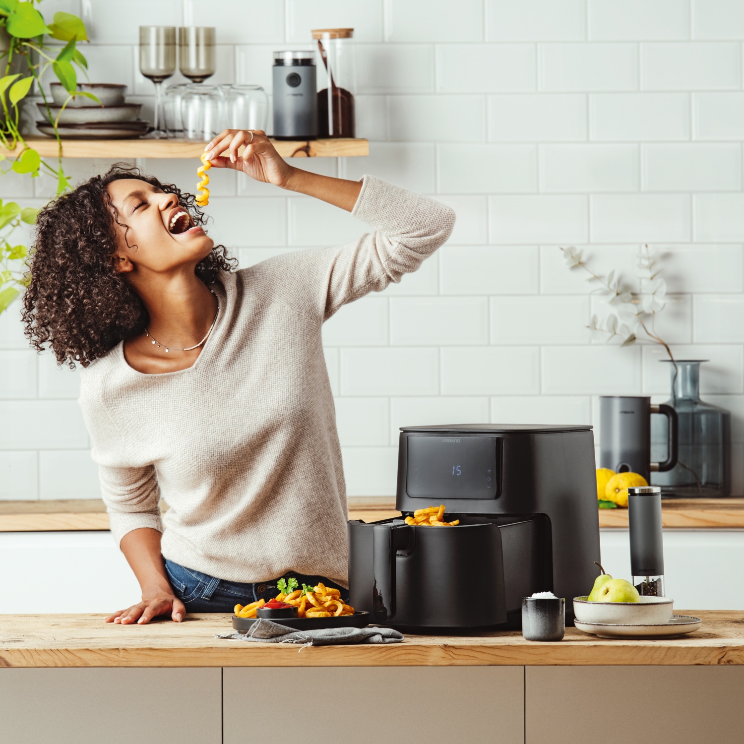 • Das Frittieren durch Heißluft ermöglicht die Zubereitung von kalorienarmen, leichten, gut verträglichen Speisen.