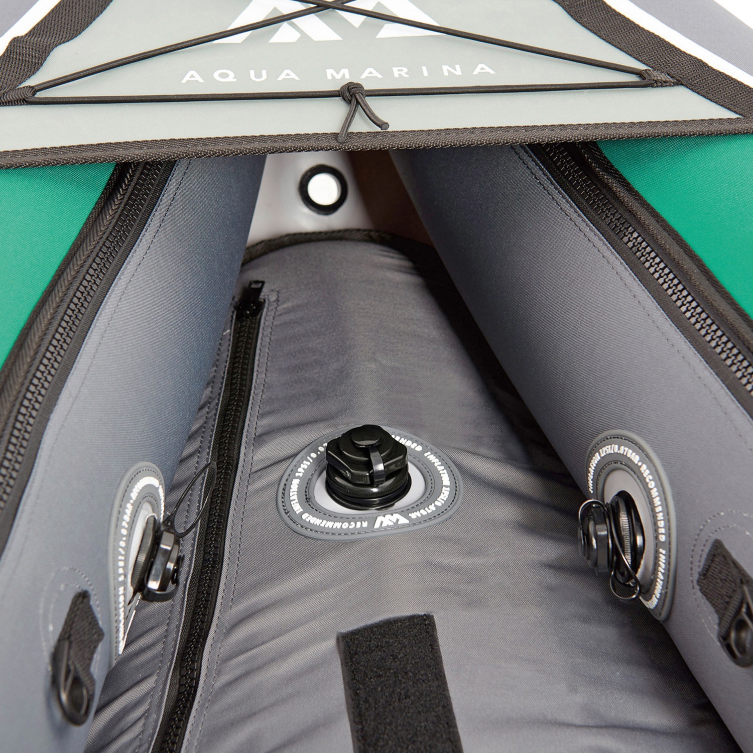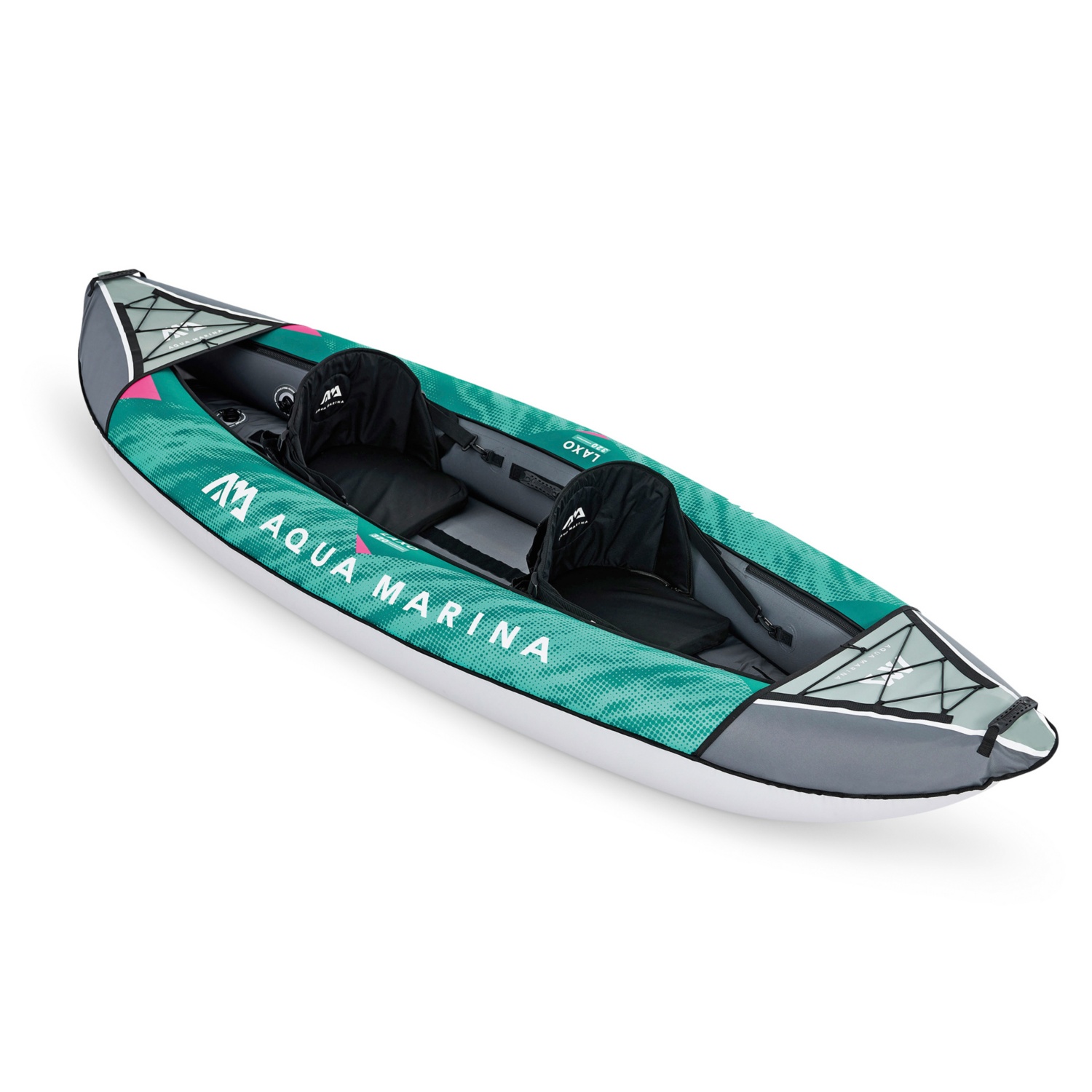 Das Aqua Marina Laxo Freizeit -Kajak ist vielseitig einsetzbar und bietet viel Platz. Gefertigt ist aus extrem haltbaren PVC Material. Die LAXO-Serie wird für 2022 mit revolutionärem Schutzhüllengewebe (AQUASHELL™-Technologie) aufgerüstet. Dies garantiert eine hohe Haltbarkeit, Festigkeit und Formstabilität. Durch den flachen Boden und dem Hochleistungs-Finnensystem mit 2 Finnen hat es hervorragende Fahreigenschaften und eine gute Manövrierbarkeit, ideal für den Einsatz auf Flüssen und Seen. Dank der leichten Handhabung ist es sowohl für Anfänger als auch für Fortgeschrittene sehr gut geeignet. Mit einer Länge von 320 cm und einer Tragkraft von über 150kg ist das Laxo für bis zu 2 Personen geeignet. Perfekt für Paare geeignet. Alternativ bietet das Laxo einem Solo-Paddler viel Platz für Ausrüstung und Gepäck. Für Sitzkomfort bei Kajak-Touren sorgen die einzeln herausnehmbaren Kajak Sitze. Bequem mit hoher Rückenlehne, verstellbarer Sitzposition, weichen Polsterung und mit Aufbewahrungstaschen an der Rückseite.
