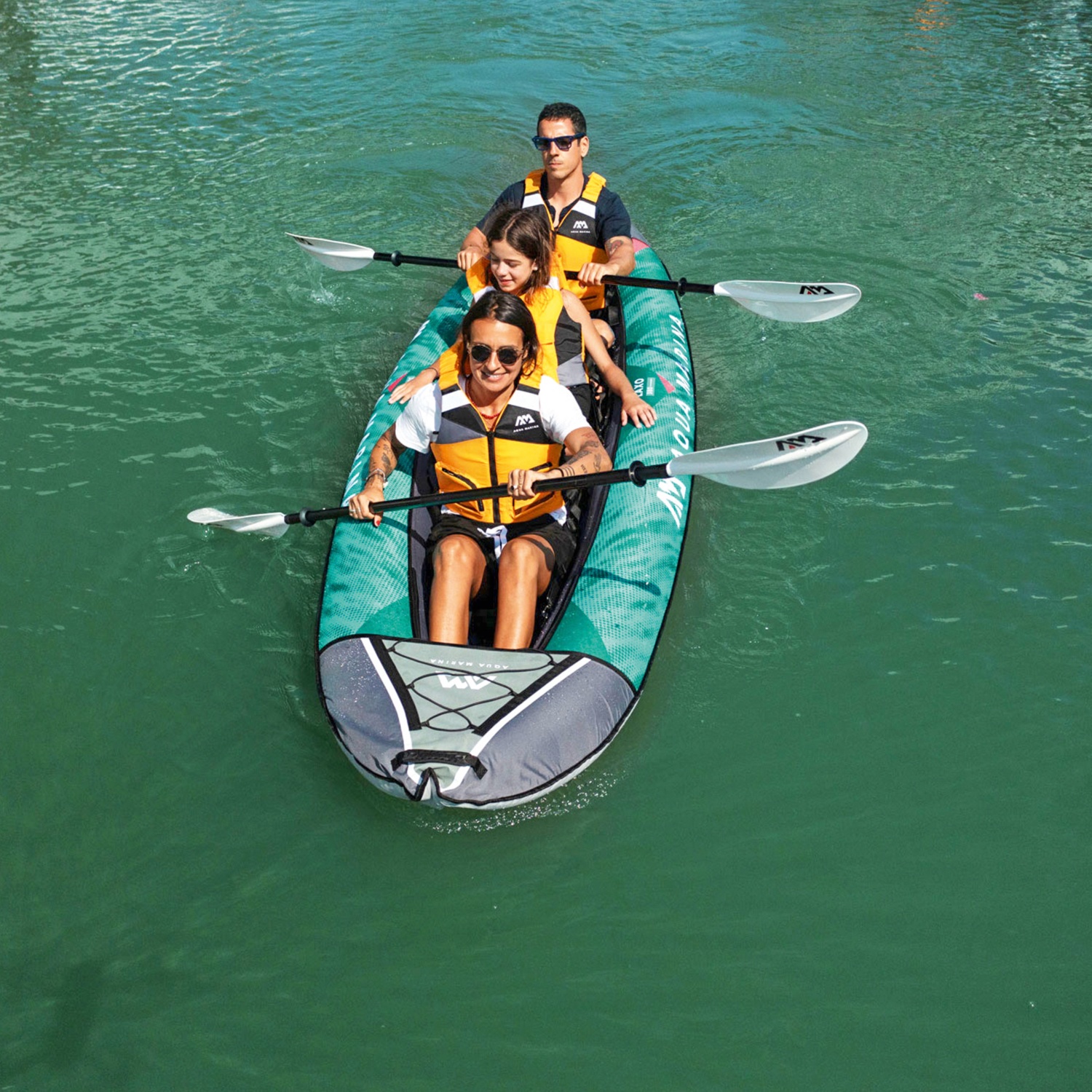 Das Aqua Marina Laxo Freizeit -Kajak ist vielseitig einsetzbar und bietet viel Platz. Gefertigt ist aus extrem haltbaren PVC Material. Die LAXO-Serie wird für 2022 mit revolutionärem Schutzhüllengewebe (AQUASHELL™-Technologie) aufgerüstet. Dies garantiert eine hohe Haltbarkeit, Festigkeit und Formstabilität. Durch den flachen Boden und dem Hochleistungs-Finnensystem mit 2 Finnen hat es hervorragende Fahreigenschaften und eine gute Manövrierbarkeit, ideal für den Einsatz auf Flüssen und Seen. Dank der leichten Handhabung ist es sowohl für Anfänger als auch für Fortgeschrittene sehr gut geeignet. Mit einer Länge von 380 cm und einer Tragkraft von über 200kg ist das Laxo für bis zu 2 - 3 Personen geeignet. Perfekt für eine Familie z.B. mit zwei Erwachsen mit einem Kind. Alternativ bietet das Laxo einem Solo-Paddler viel Platz für Ausrüstung und Gepäck. Für Sitzkomfort bei Kajak-Touren sorgen die einzeln herausnehmbaren Kajak Sitze. Bequem mit hoher Rückenlehne, verstellbarer Sitzposition, weichen Polsterung und mit Aufbewahrungstaschen an der Rückseite.