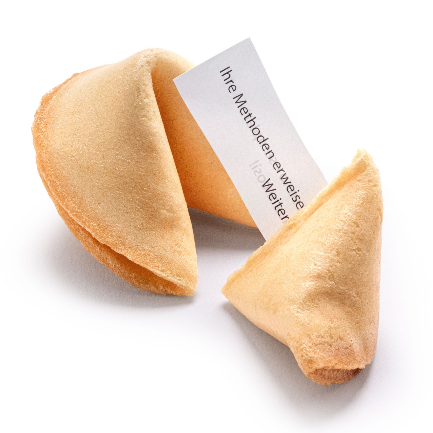 Glückskeks - Gebäck aus Weizenmehl mit einem Zettel im Inneren der vor dem Verzehr herauszunehmen ist.