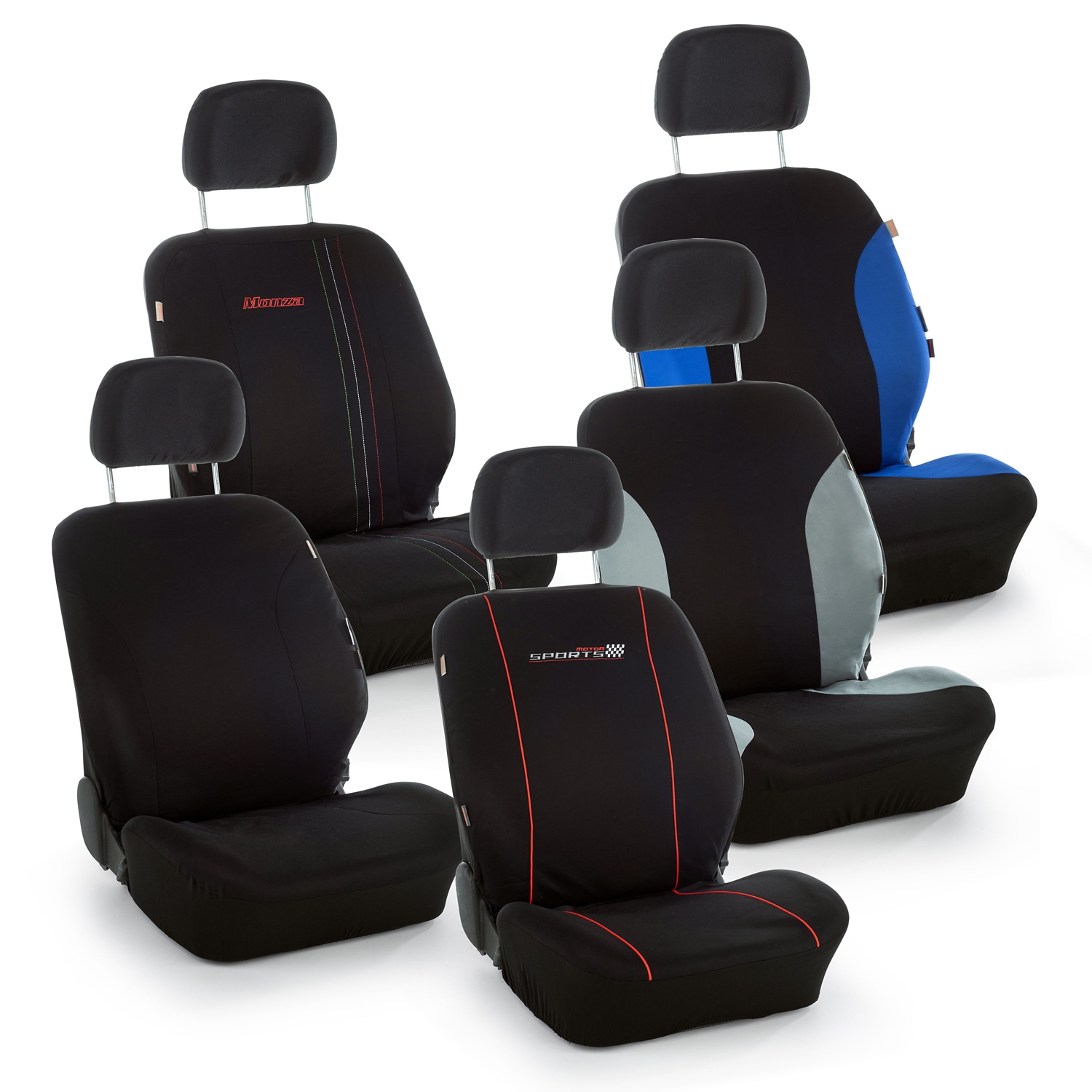 • Komplett-Garnitur: für 2 Vordersitze (2-teilig), 5 Nackenstützen und einen Rückbankbezug (teilbar)