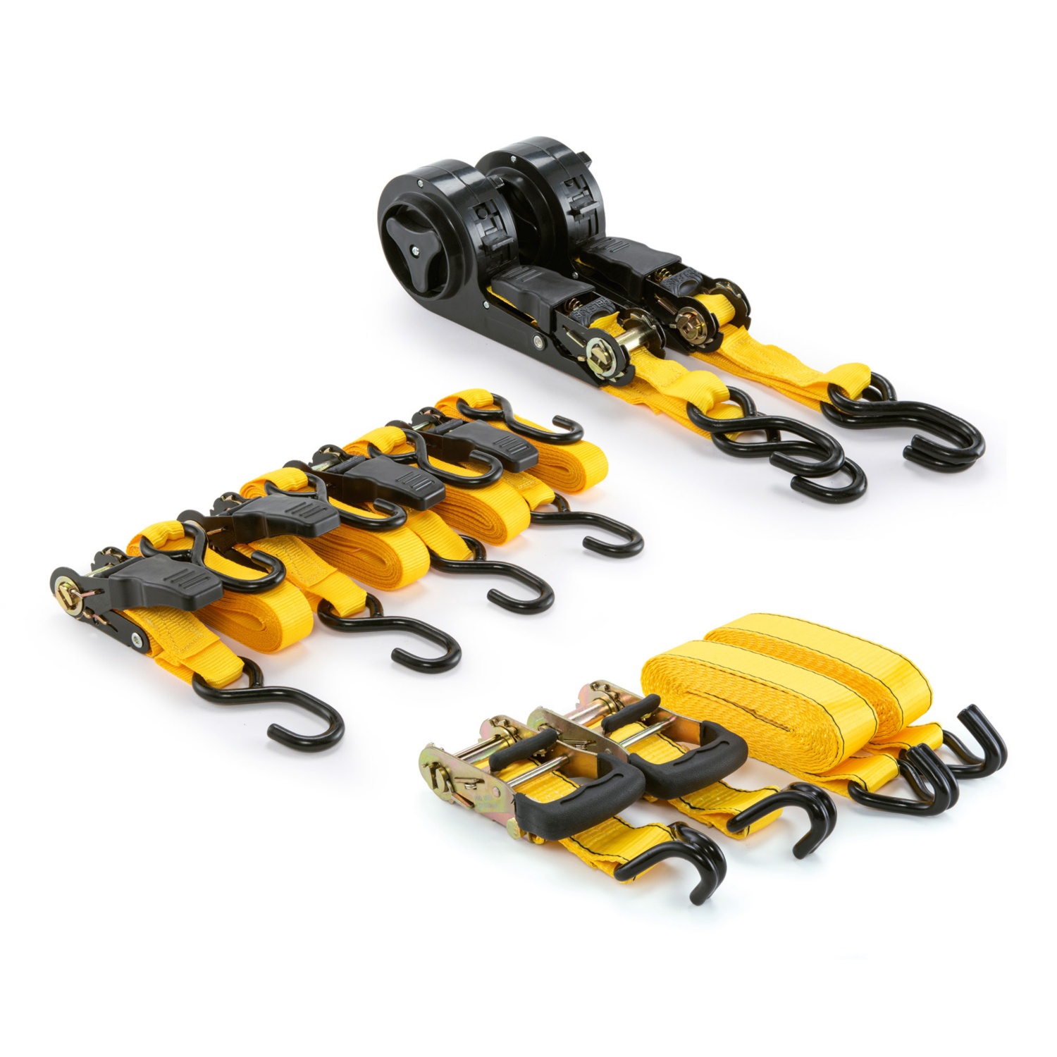 • 2 Haltegurte mit Ratsche und Aufrollfunktion (Breite: 25 mm, Länge: 4 m)