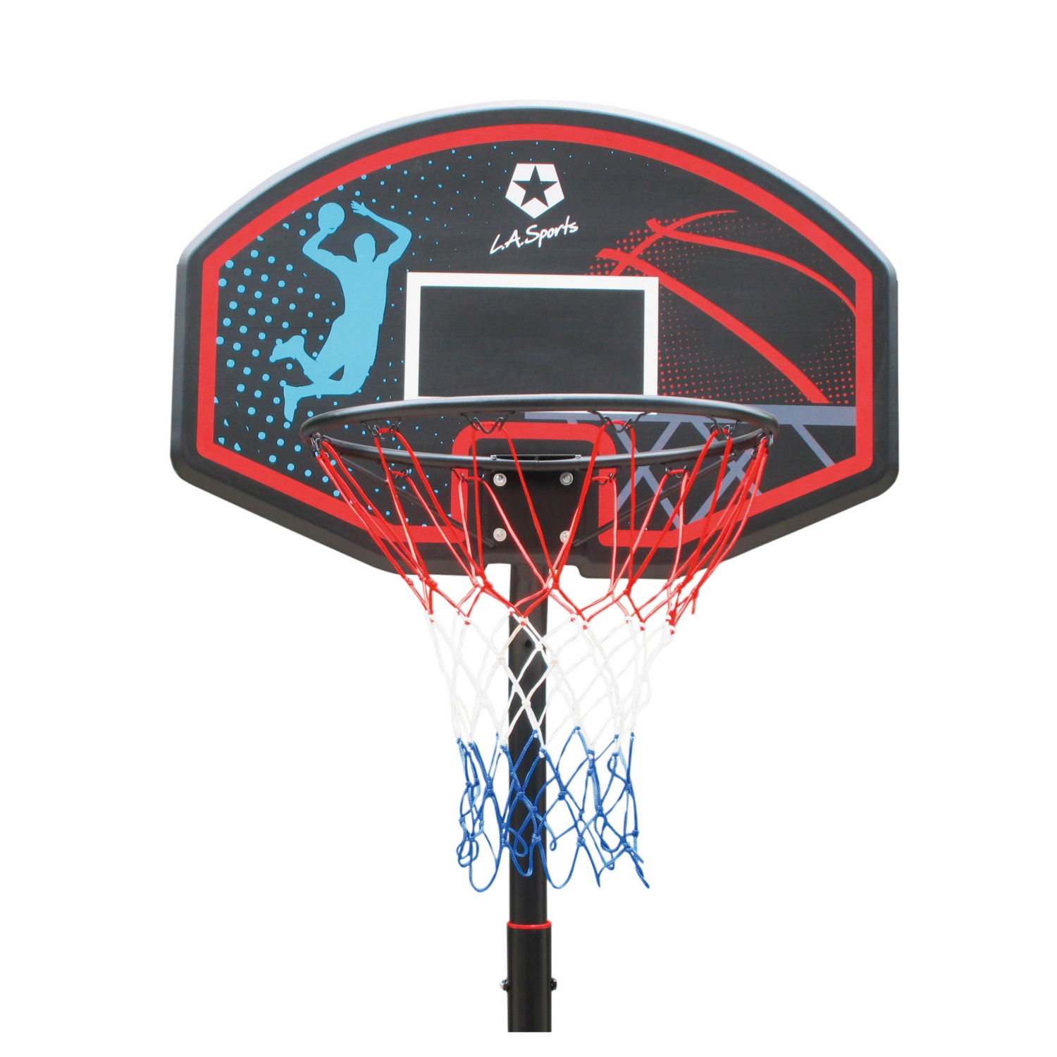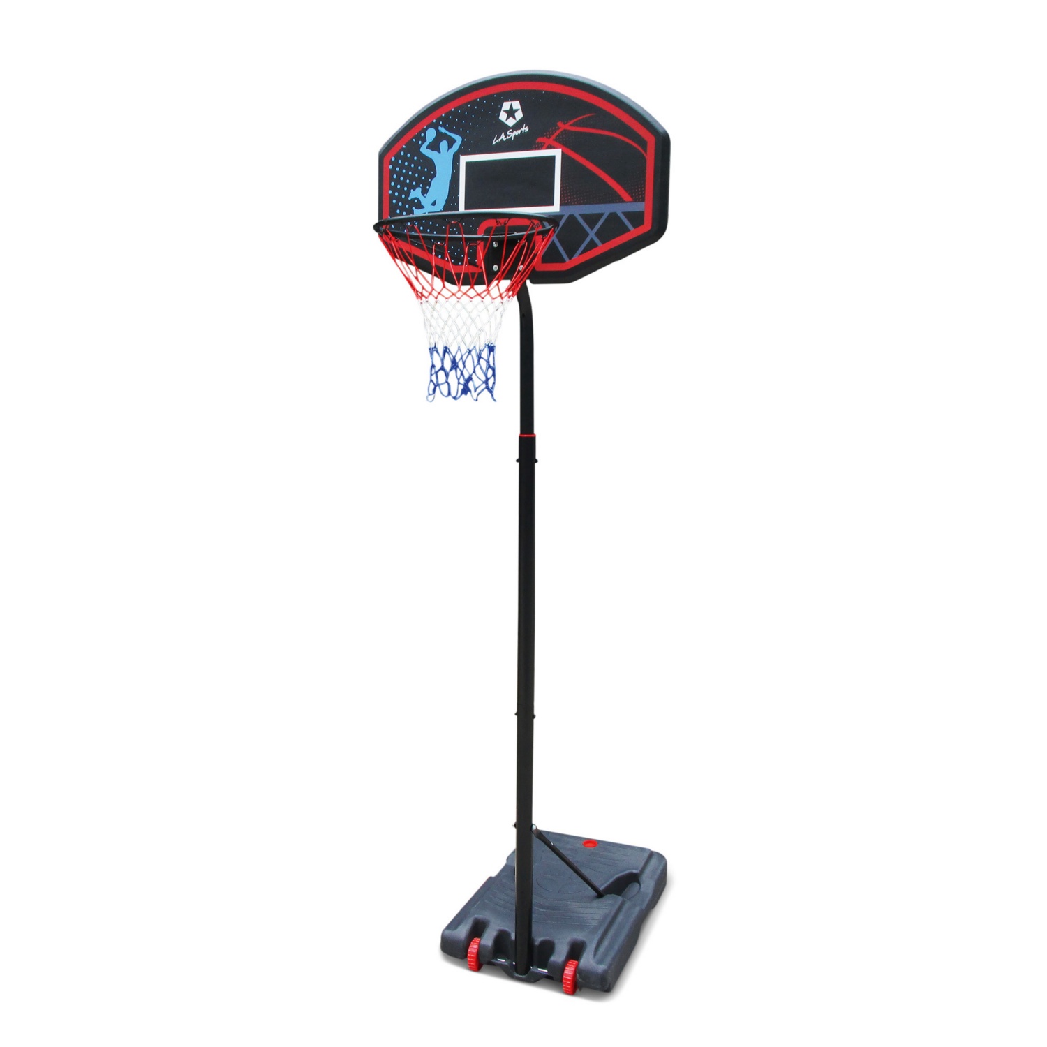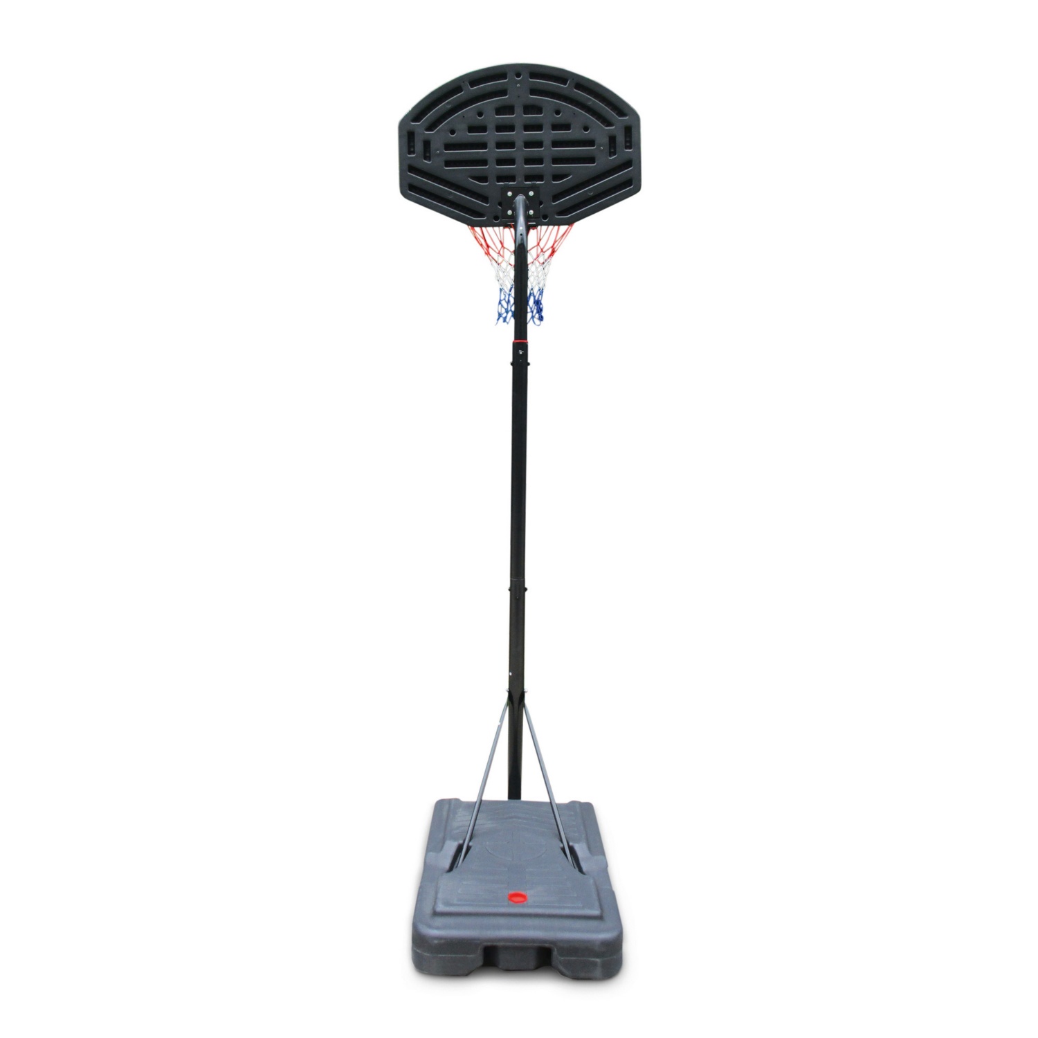 • Der transportable Basketballständer ist ideal für den Einsatz in Haus und Garten. Durch die Räder ist der Basketballständer leicht zu transportieren. Für einen sicheren Stand lässt sich der Ständer mit Wasser oder Sand befüllen. Dank der Höhenverstellung von ca. 205 bis 260 cm Ringhöhe (Gesamthöhe ca. 260 - 310 cm), wächst der Basketballkorb mit, so ist ein langer Spielspaß für Kinder, Jugendliche und Erwachsene garantiert. Die stabilen Metallrohre sind pulverbeschichtet. Das Basketballbrett ist aus robustem Kunststoff (PE) gearbeitet und hat eine Größe von ca. 91 x 57 und ist ca. 3 cm stark. Der Ring hat einen Durchmesser von ca. 47 cm und das Netz ist 46 cm lang. Passend für Mini und Standard Basketbälle. Details: