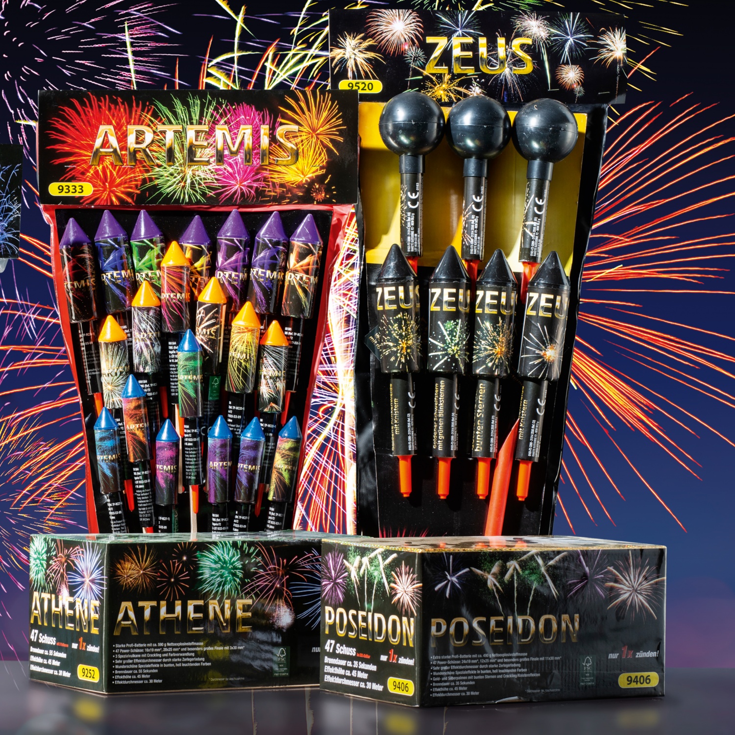 • Profi-Batterie: 47 Power-Schüsse mit wunderschönen Spezialeffekten in bunten, hell leuchtenden Farben sowie großem Finale