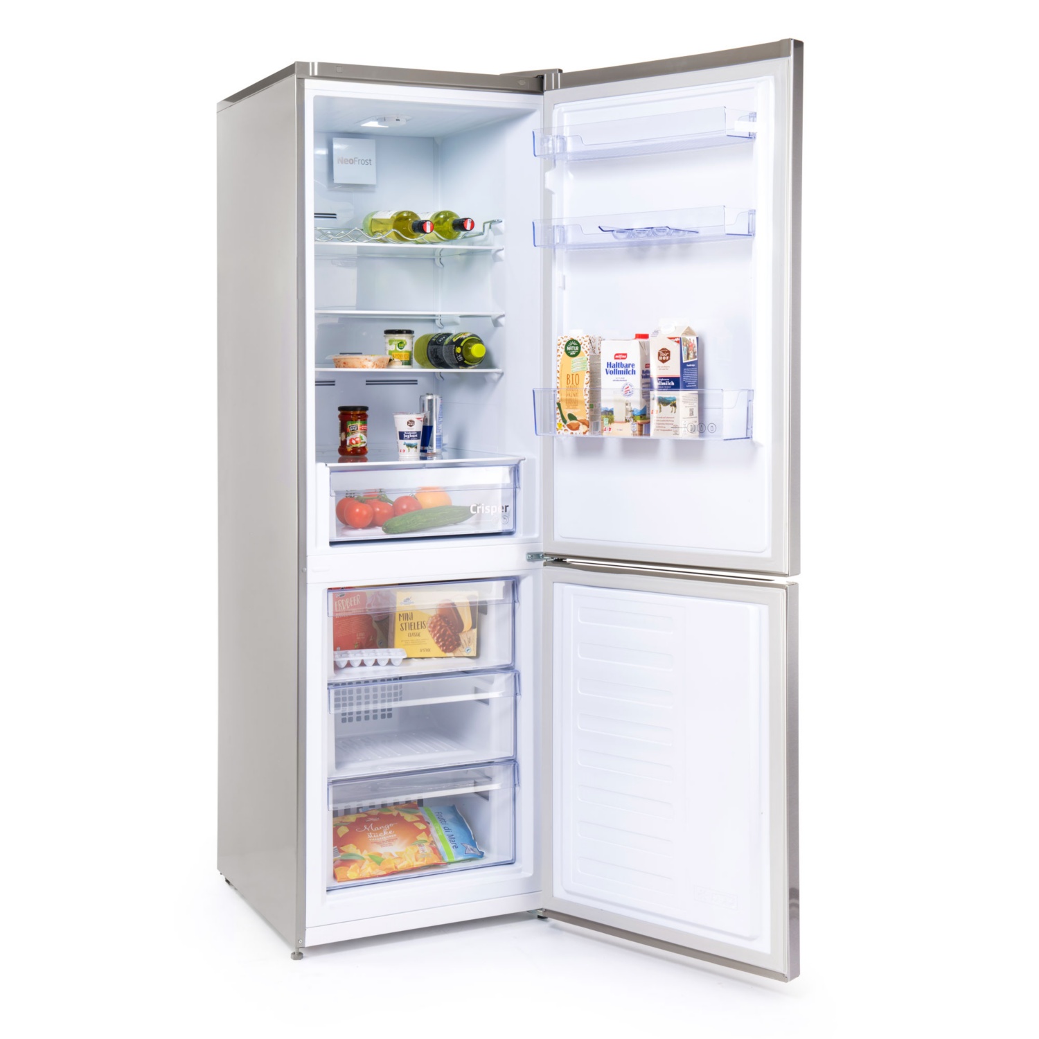 • Kühlteil mit 4 Glasböden, 1 Frischhalteschublade für Obst und Gemüse sowie 3 Türfächern