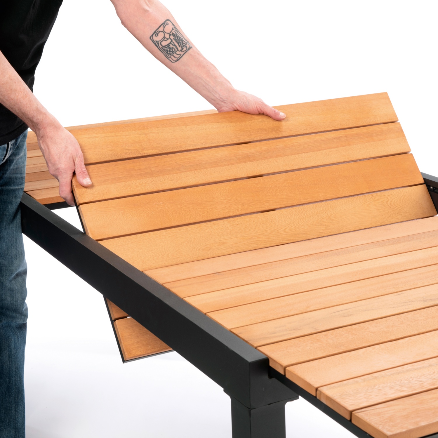 • robuste 15-mm-Tischplatte aus Eukalyptusholz oder Polystyren