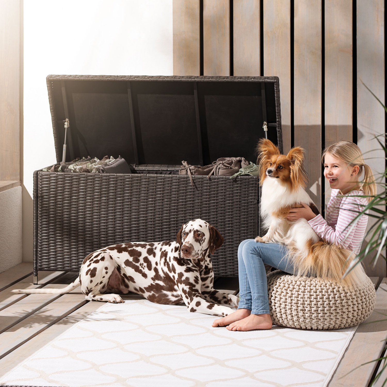 • Bespannung aus UV-stabilem und wasserbeständigem Kunststoffgeflecht