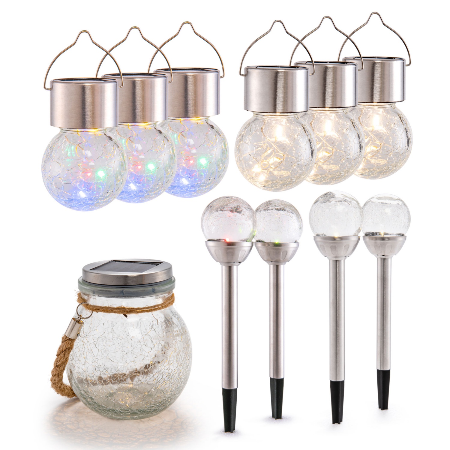 BELAVI LED-Solar-Gartenleuchte "Crackle-Design"