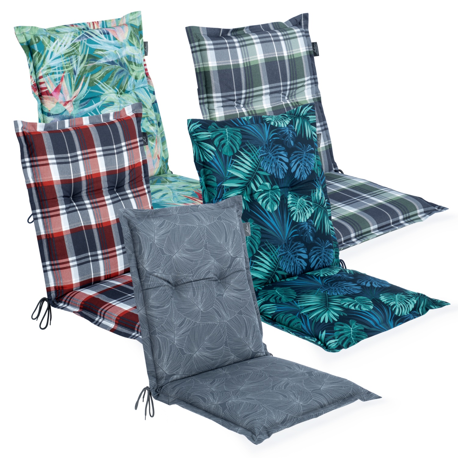 Für bequemes Sitzen auf Gartenmöbeln mit niedriger Lehne rundum 2,5 cm Stehsaum Bezug aus Baumwolle und Polyester Maße: 95 x 47 x 8 cm (L x B x T) ohne Sessel verschiedene Farben und Muster