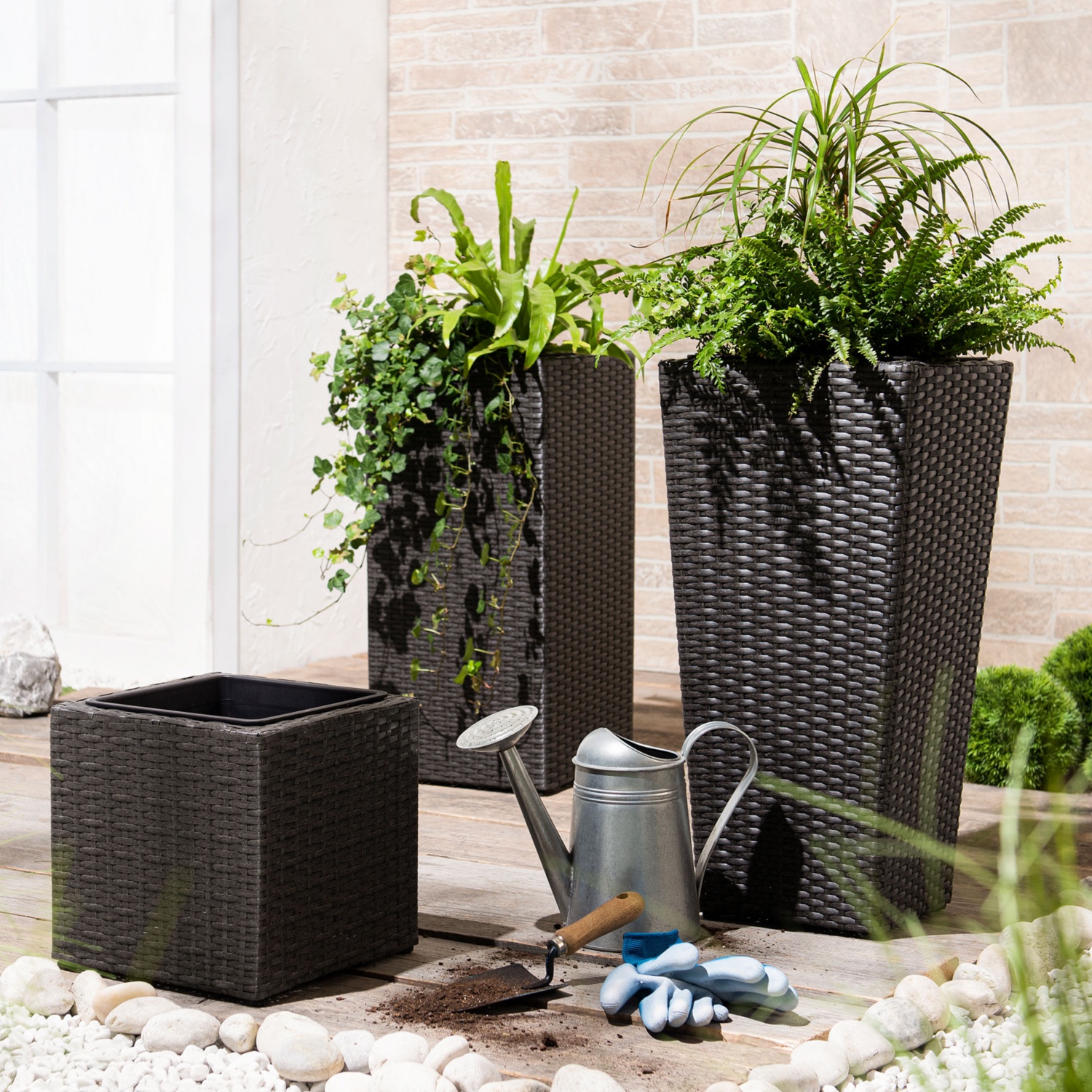 • aus witterungsbeständigem, pflegeleichtem Kunststoff-Geflecht