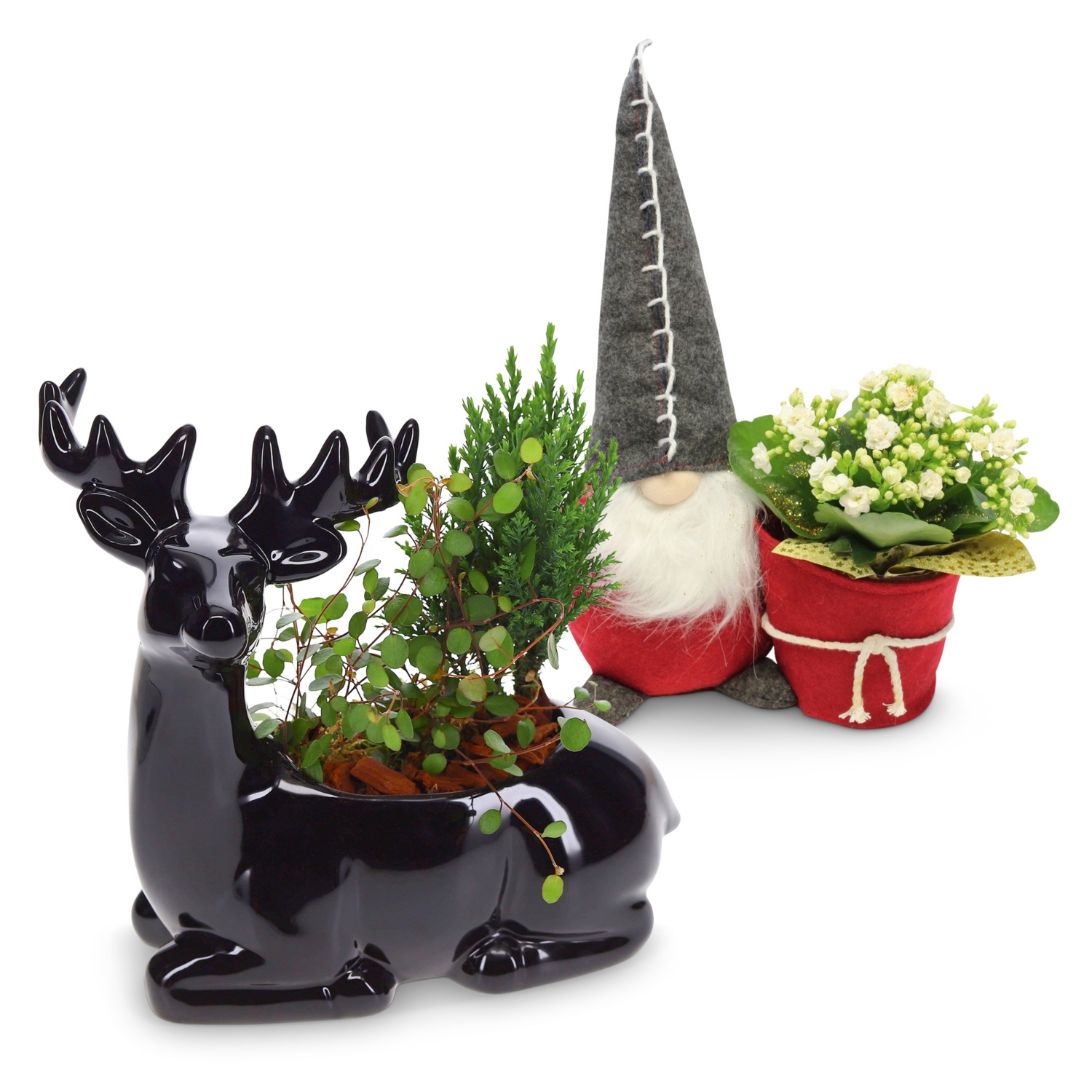 weihnachtlich bepflanzte Gefäße in hochwertigen Ausführungen