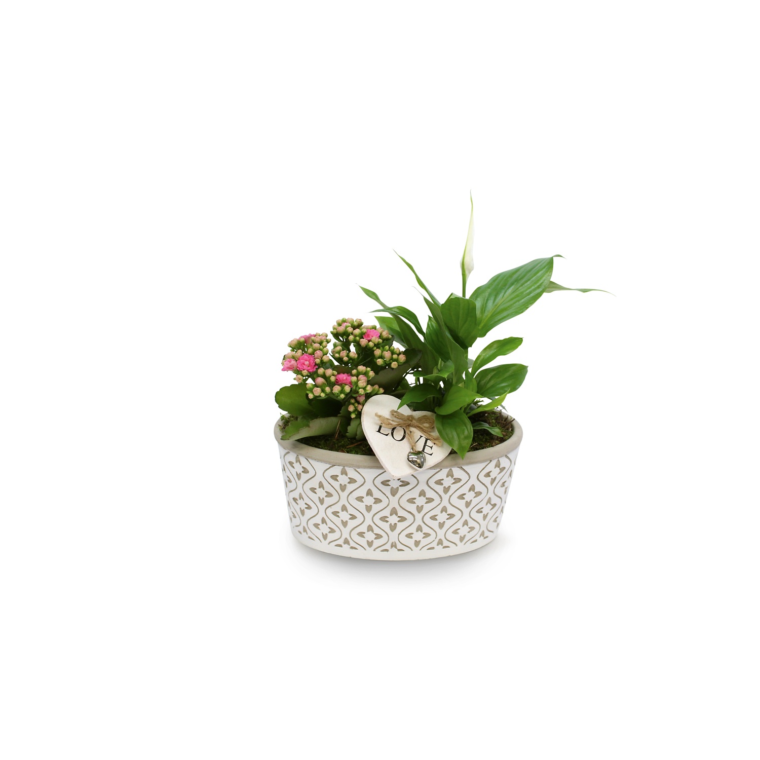 Bepflanztes Valentinsarrangement, Betongefäß, Muster