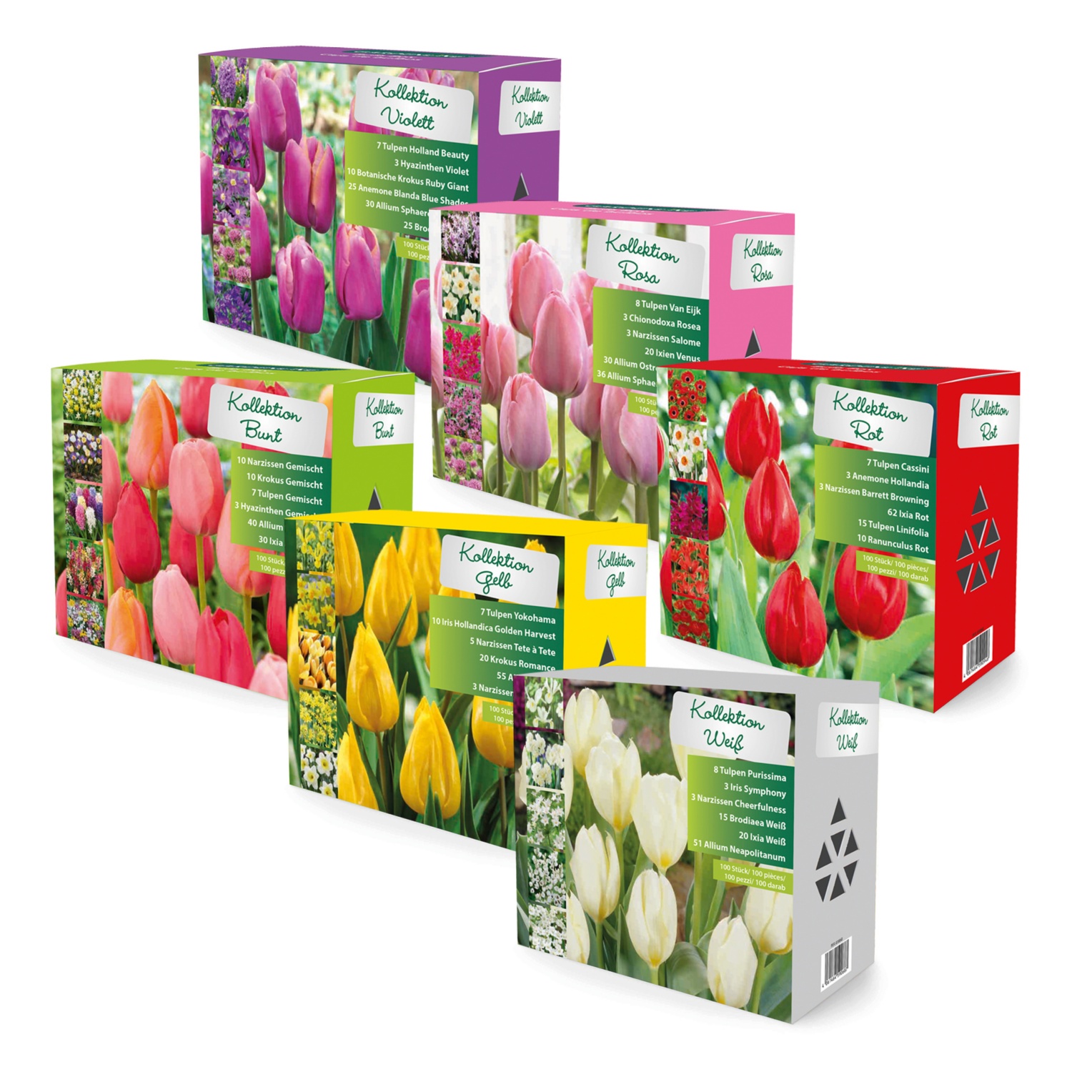• in den Farben Gelb, Rosa, Rot, Purpur, Weiß oder Bunt