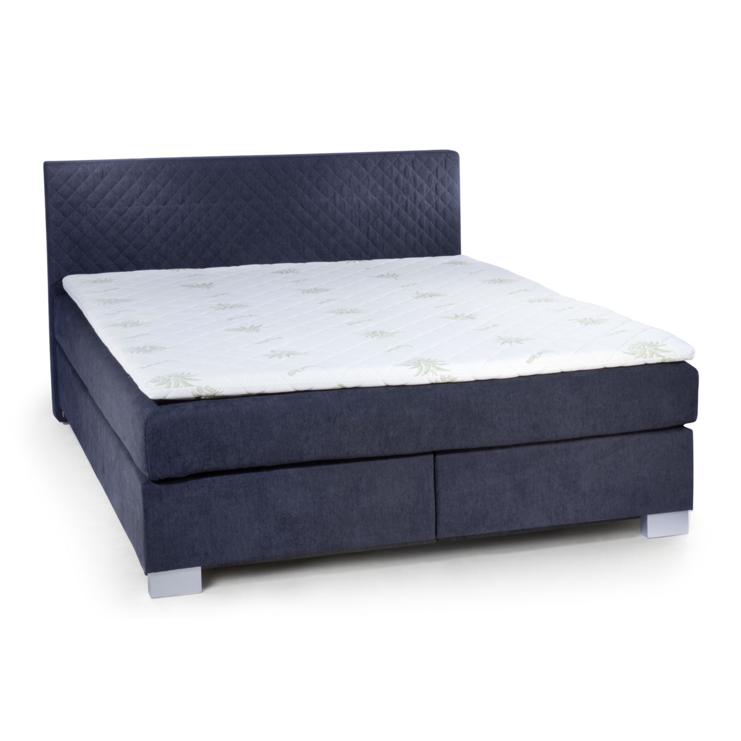 • modernes Boxspringbett in zwei Ausführungen:in der Farbe Dunkelblau mit Rautensteppung im Kopfteil und alufarbigen Eichenfüßen oder in der Farbe Anthrazit mit Kassettensteppung im Kopfteil und Eichenfüßen Natur geölt