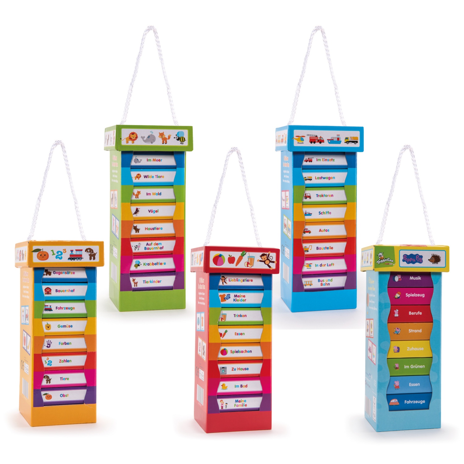 mit 8 Büchern in einer Box mit Tragegriff, Themen: Erste Wörter, Meine Sachen, Fahrzeuge, Tiere oder Peppa Pig
