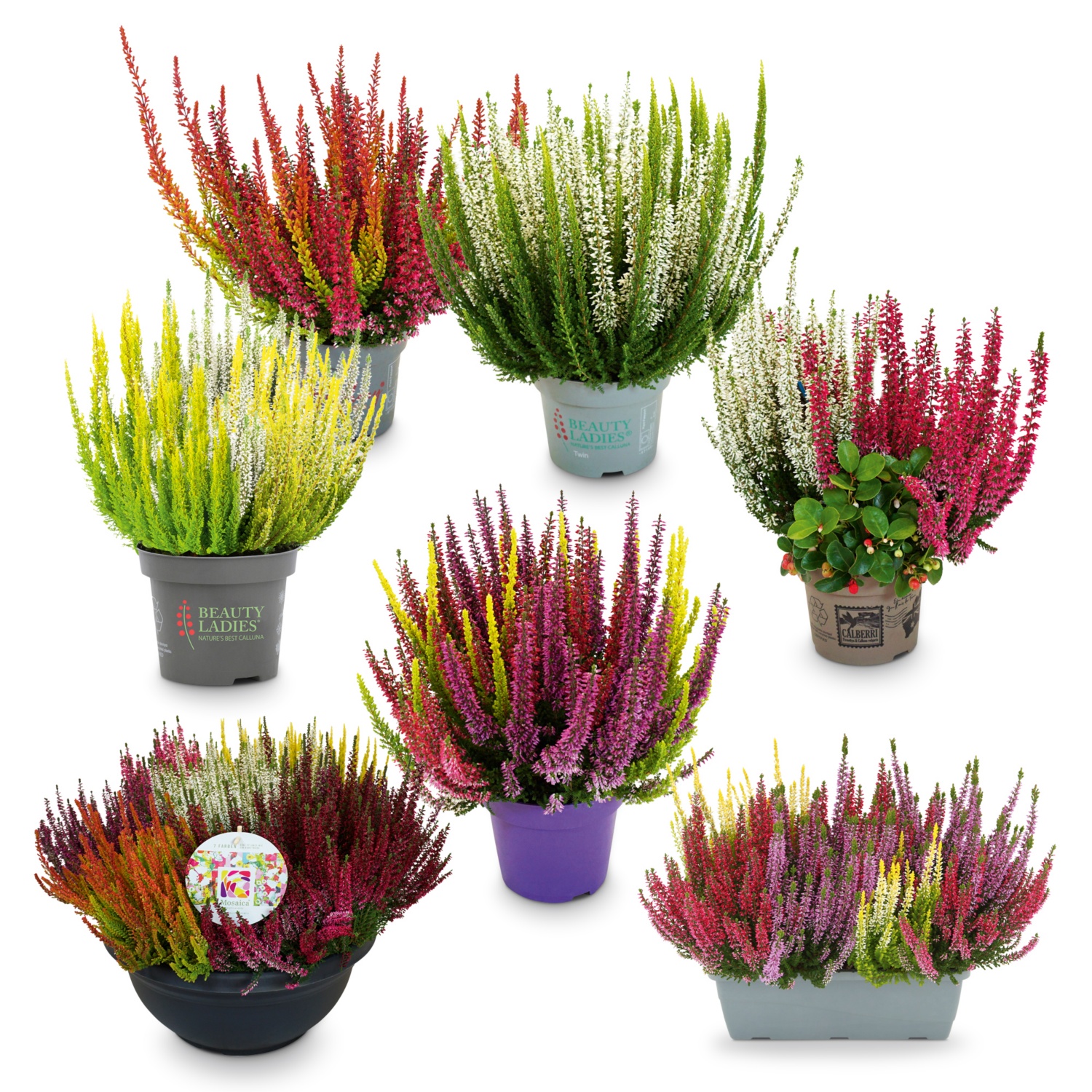 • mit Callunen in verschiedenen Blütenfarben bepflanzt