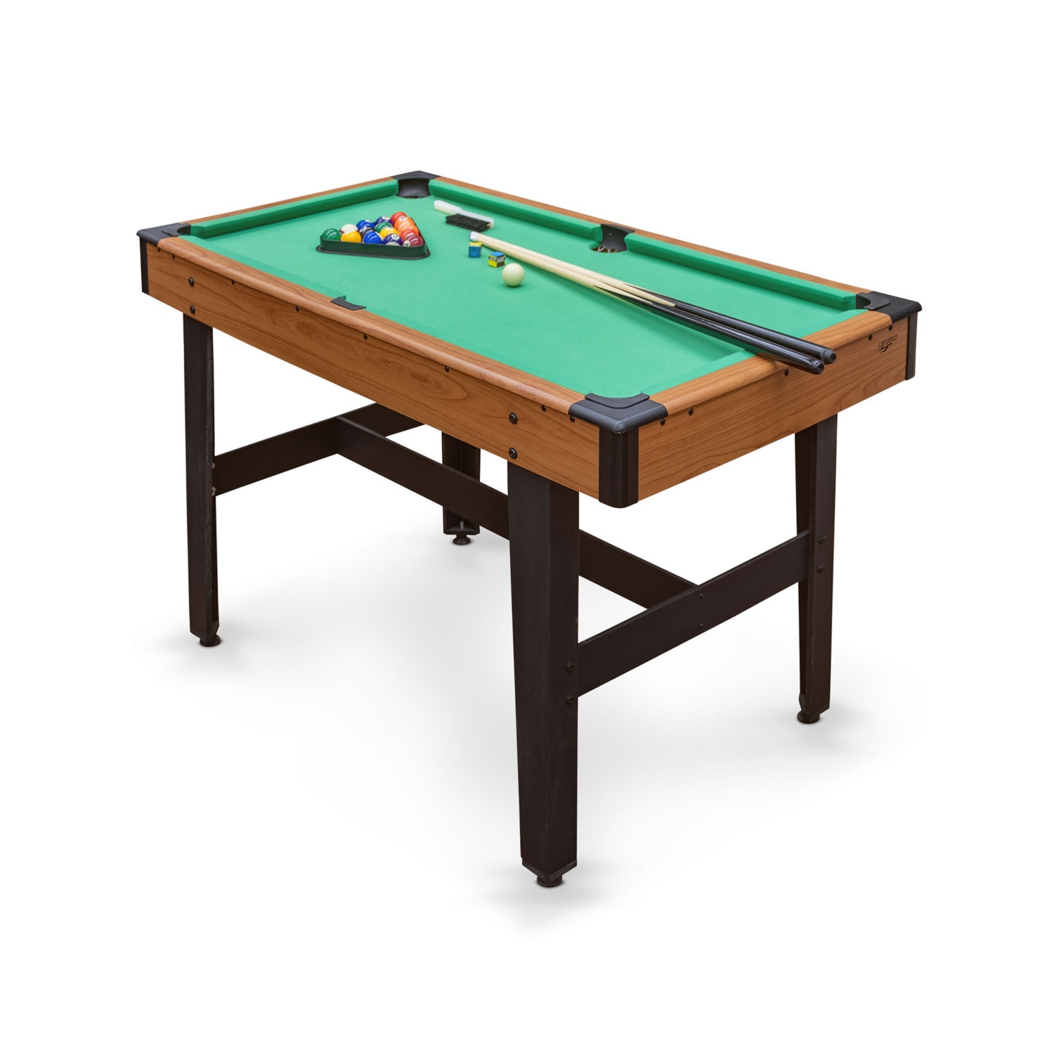 • Zubehör: 16 Billardkugeln (38 mm), Triangel, 2 Queues (103,7 cm), Kreide und Bürste