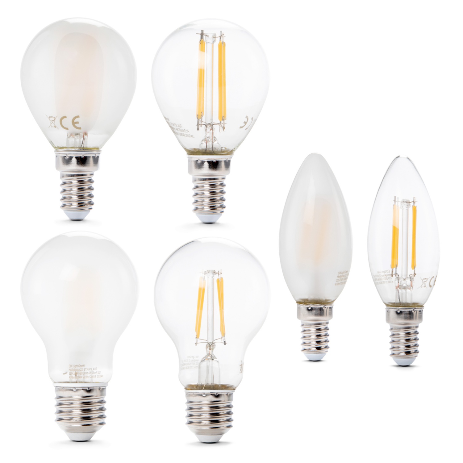 • LED-Tropfen: klar, E14 oder
