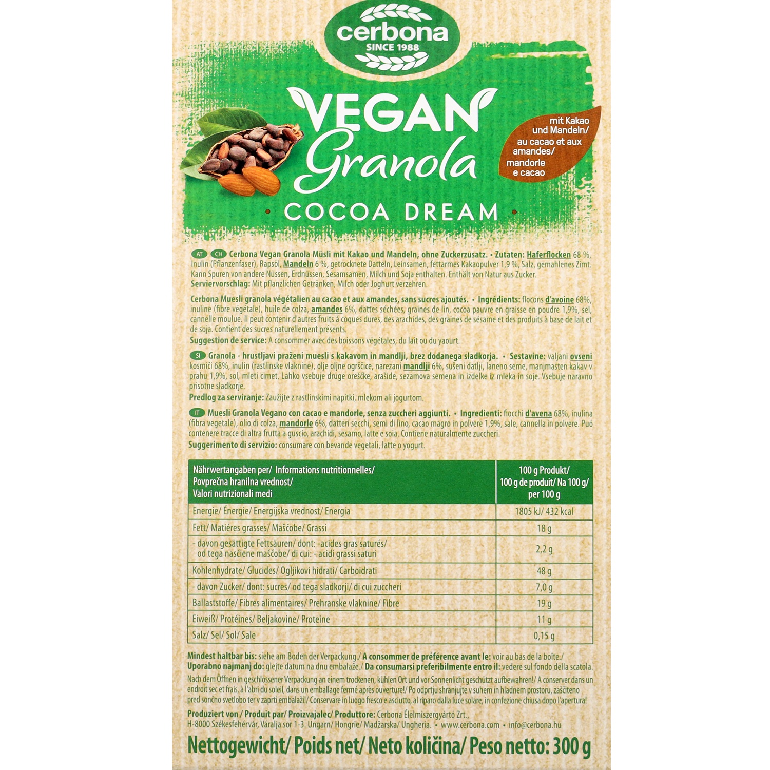 CERBONA veganes Granola, Kakao-Mandel