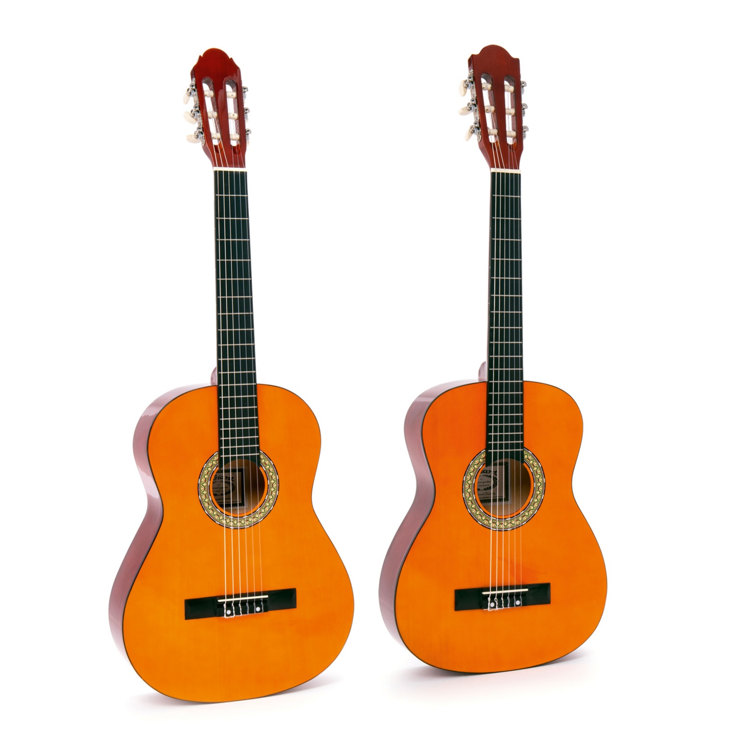 • Konzertgitarre: 4/4 Mensur, Gesamtlänge 101 cm, für Kinder ab 12 Jahren geeignet, getönte, laminierte Lindendecke, Griffbrett aus Hartholz, Boden und Zargen mahagonifarben getönt oder