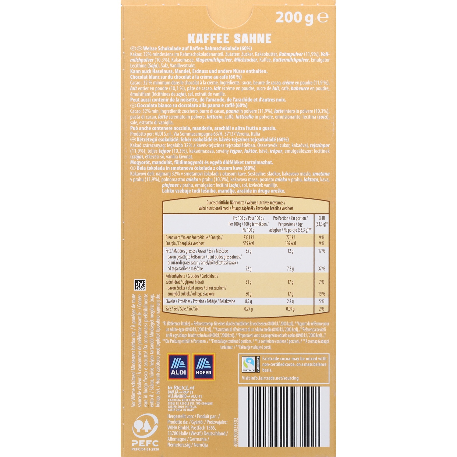 CHOCEUR Weiße Schokolade, Kaffee-Sahne