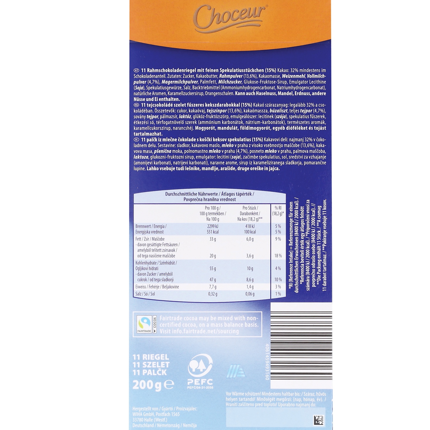 CHOCEUR Winter Schokoriegel, Spekulatius