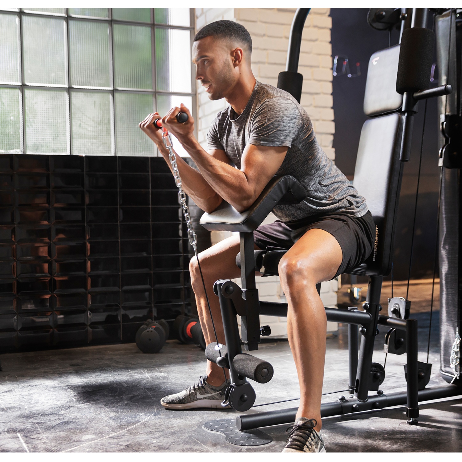 Die Kraftstation SP 2000 von Christopeit Sport ist die ideale Lösung für ein effektives Ganzkörpertraining im eigenen Home Gym. Mit nur einem Gerät kannst Du gezielt verschiedene Muskelgruppen ansprechen – ob Brust, Rücken, Arme, Beine oder Bauch. Möglich wird das durch vielseitiges Equipment wie Latzug, Butterfly, Brustpresse, Bizeps-Curl sowie Beinbeuger und Beinstrecker.