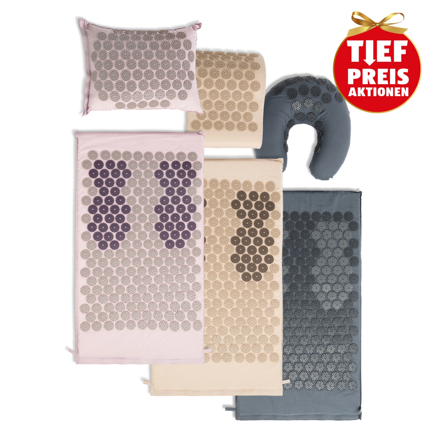 • mit 210 Nadelfeldern auf der Matte und hervorgehobenem Nadelfeld für die Fußmassage, sowie extra Nackenkissen