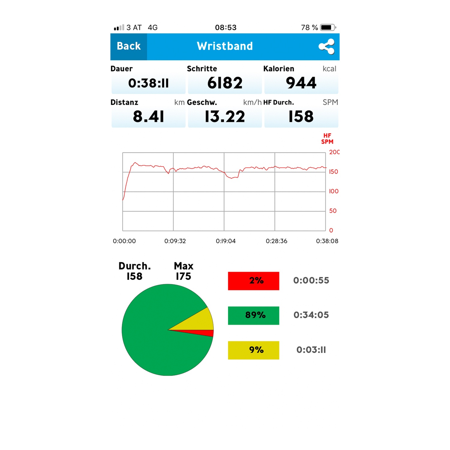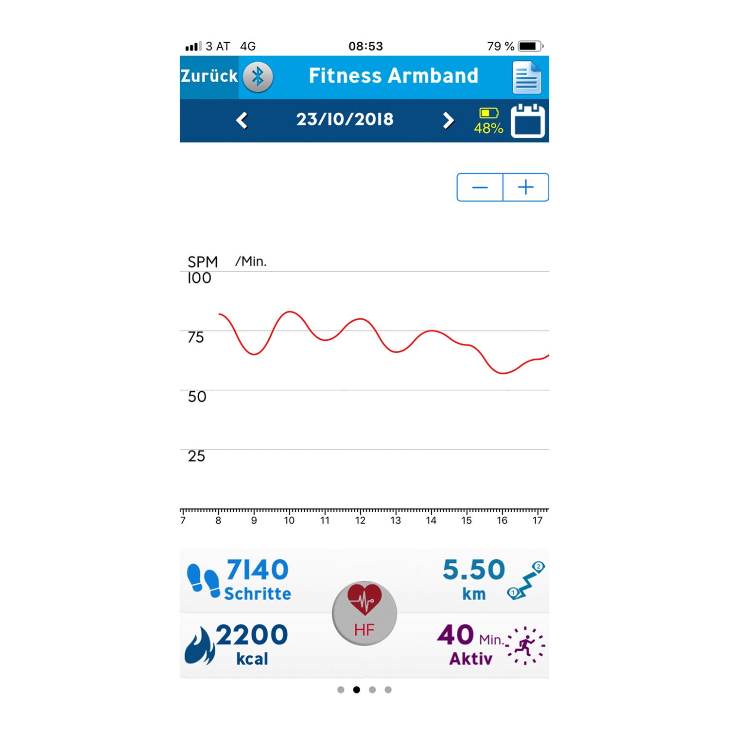 • Schrittzahl/Distanz/Kalorienverbrauch (täglich)