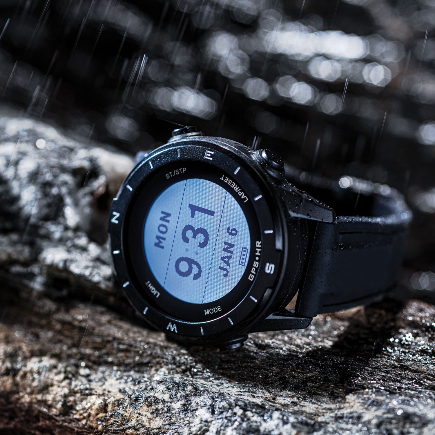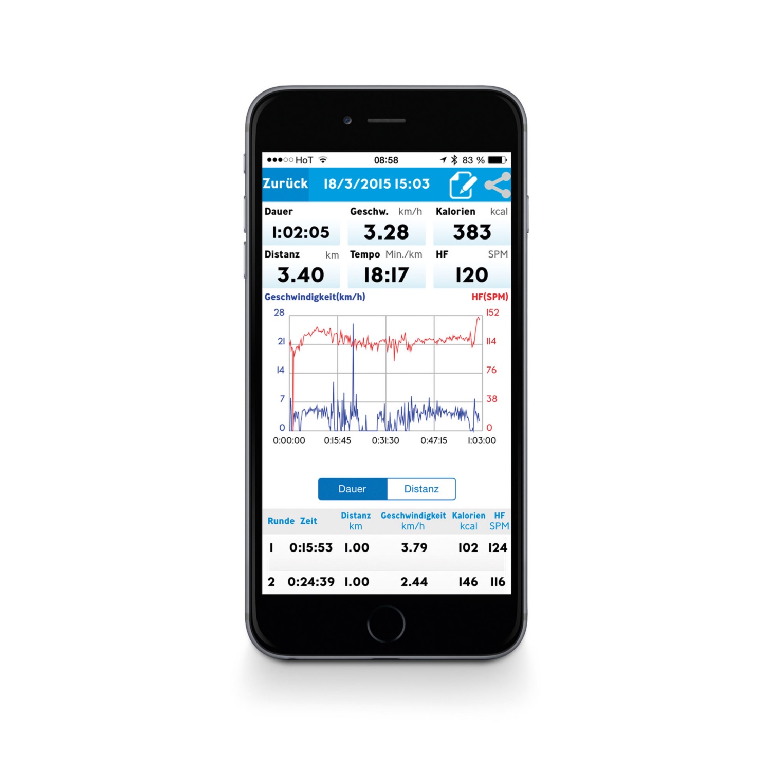 • Trainingsaufzeichnung (Ø Geschwindigkeit, Distanz-/Höhenmessung, Trainingszeit, Stoppuhr, autom. Rundenzeitenspeicher, Pulsmessung am Handgelenk)