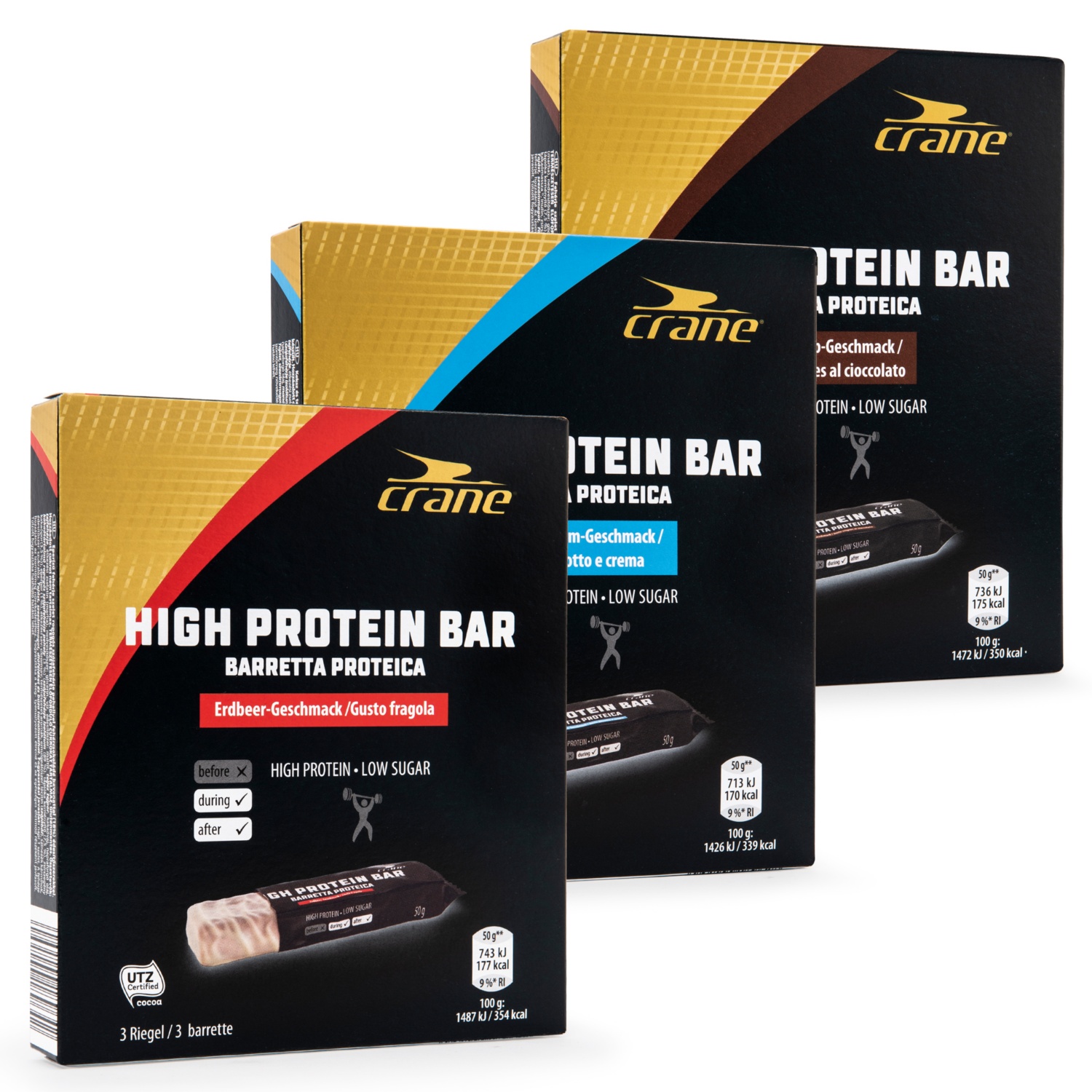 Protein Riegel mit 50% Eiweiß. Proteine tragen zu einer Zunahme an Muskelmasse sowie zur Erhaltung von Muskelmasse bei.* Low Sugar High Protein