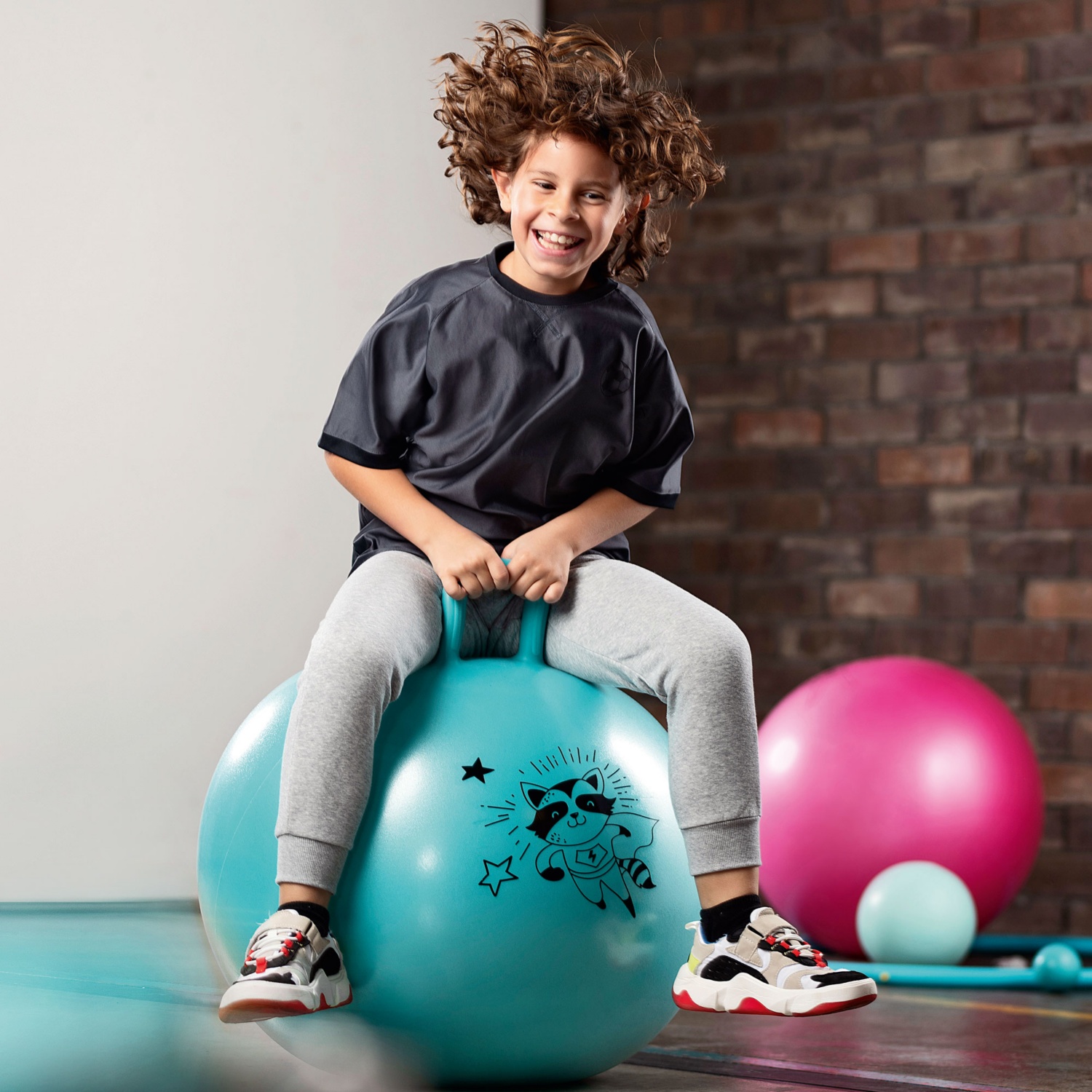• Hüpfball Ø 65 cm (max. Benutzergewicht 60 kg),