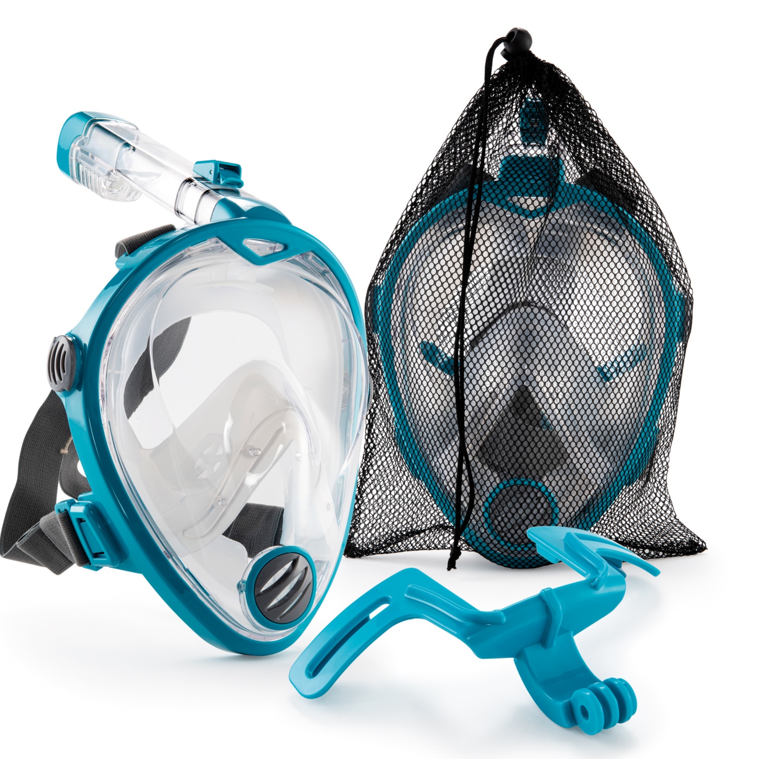 • Die 2in1-Schnorchelmaske ermöglicht nicht nur ein faszinierendes Unterwasser-Erlebnis aufgrund der 180°-Panoramascheibe, sondern auch eine natürliche Atmung durch Mund und Nase. Dies wird zusätzlich durch die Dry-Top-Technologie, welche das Eindringen von Spritzwasser verringert, begünstigt.