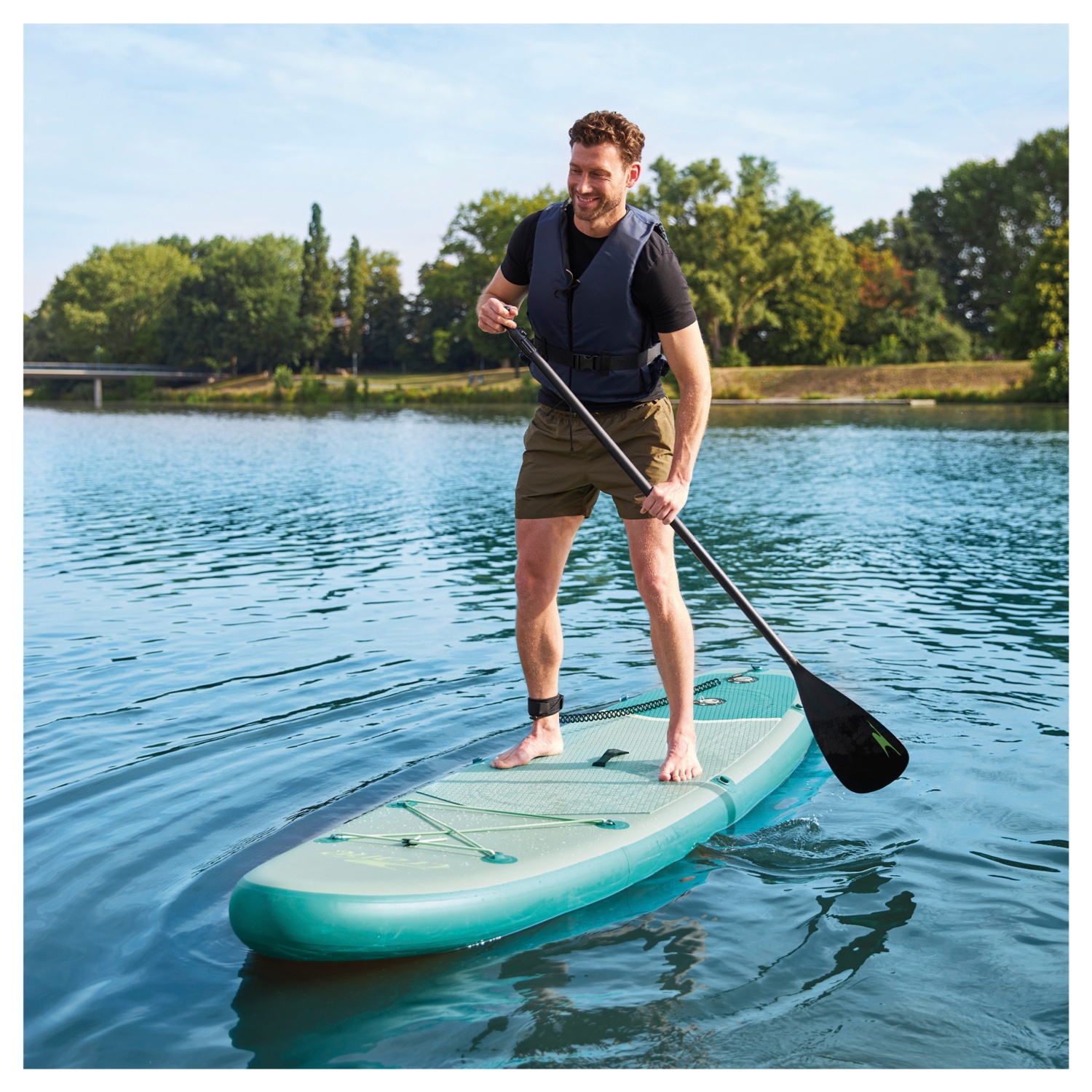 • set bestehend aus Board, Paddel, Standluftpumpe, Tragetasche, Sicherungsleine und Reparaturset