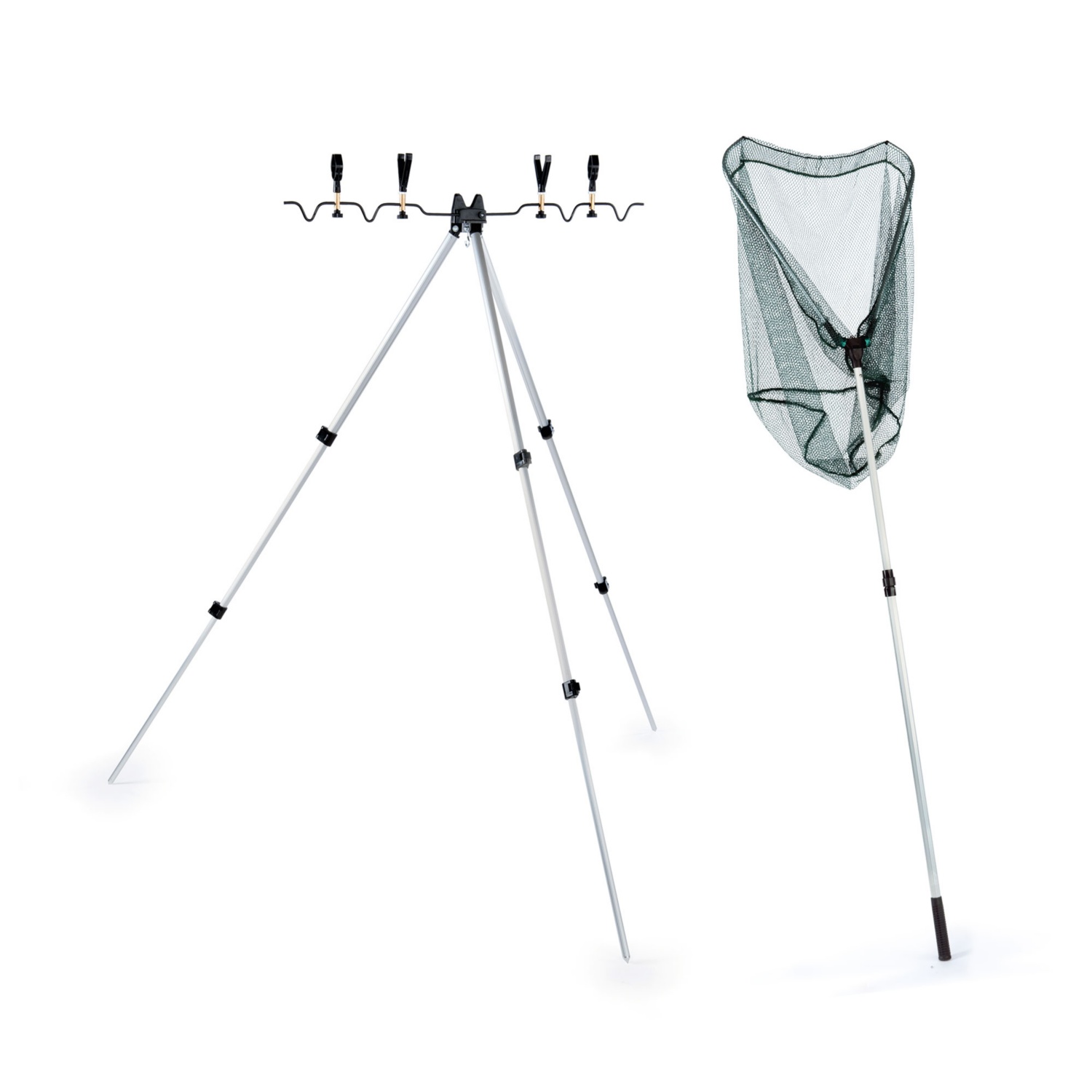 • Rutenhalter: mit 4 abnehmbaren Rutenauflagen (2 x V, 2 x U), Alu-Dreibeinstativ, höhenverstellbar von 52 bis 126 cm, in praktischer Tragetasche