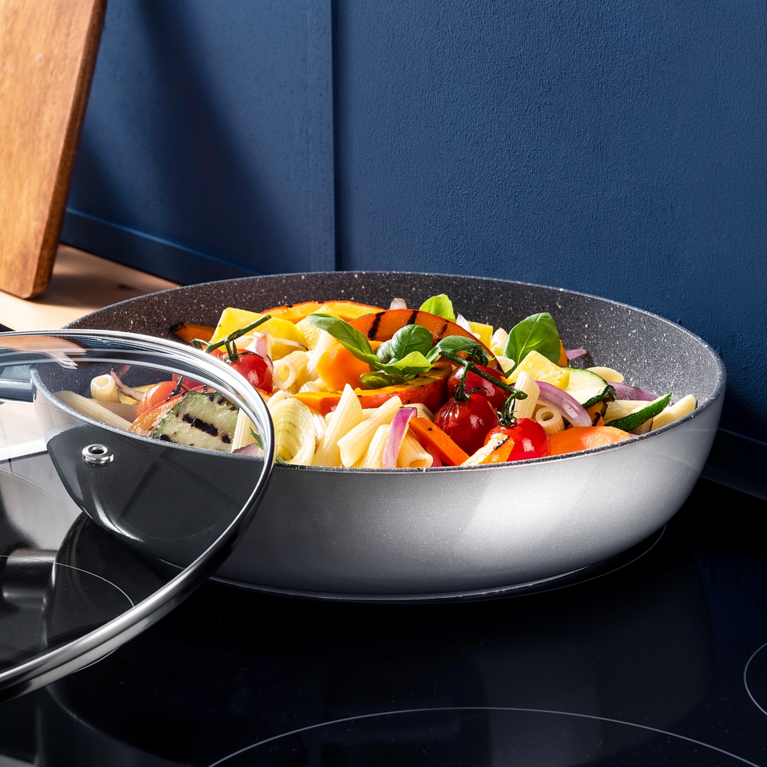 extra hoher Rand für mehr Inhalt und weniger Fettspritzer
