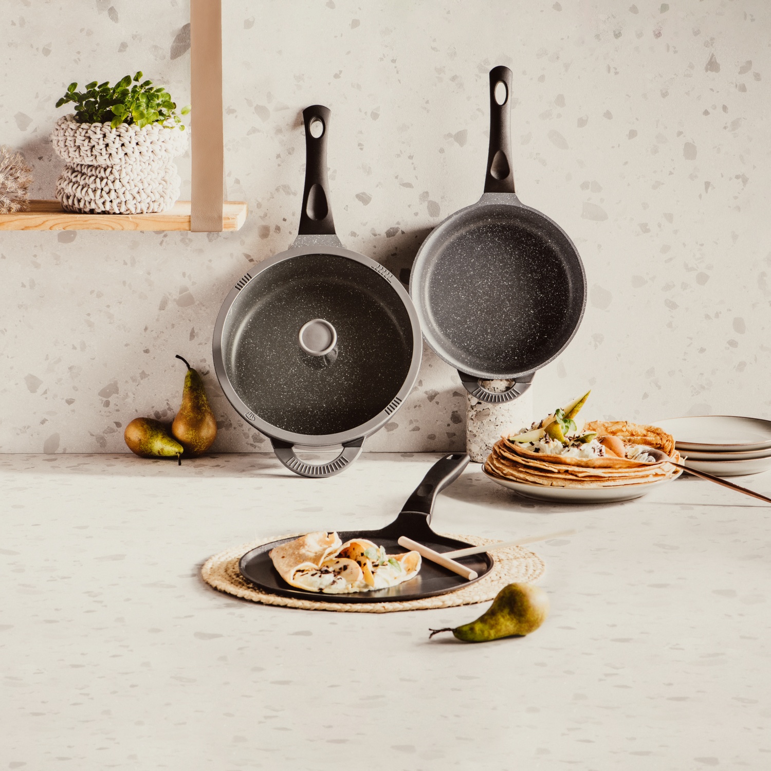 aus Aluminium-Guss, innen mit 3-fach ILAG-Ultimate-Antihaftbeschichtung, spülmaschinen- und backofengeeignet bis ca. 150 °C;Ø 30 cm