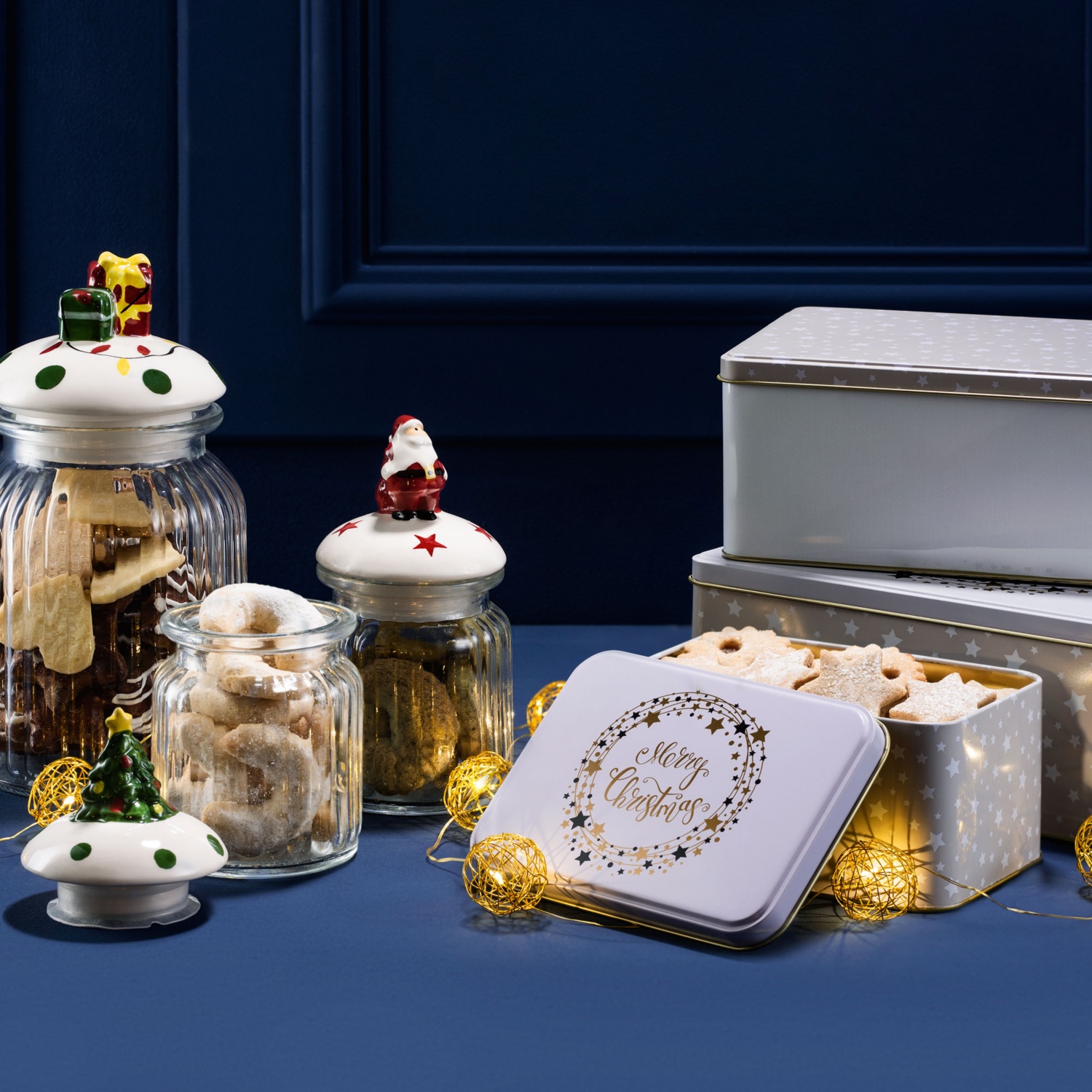 • Gebäckdosen, 3-teilig: rechteckig oder rund – jeweils in 3 verschiedenen Größen